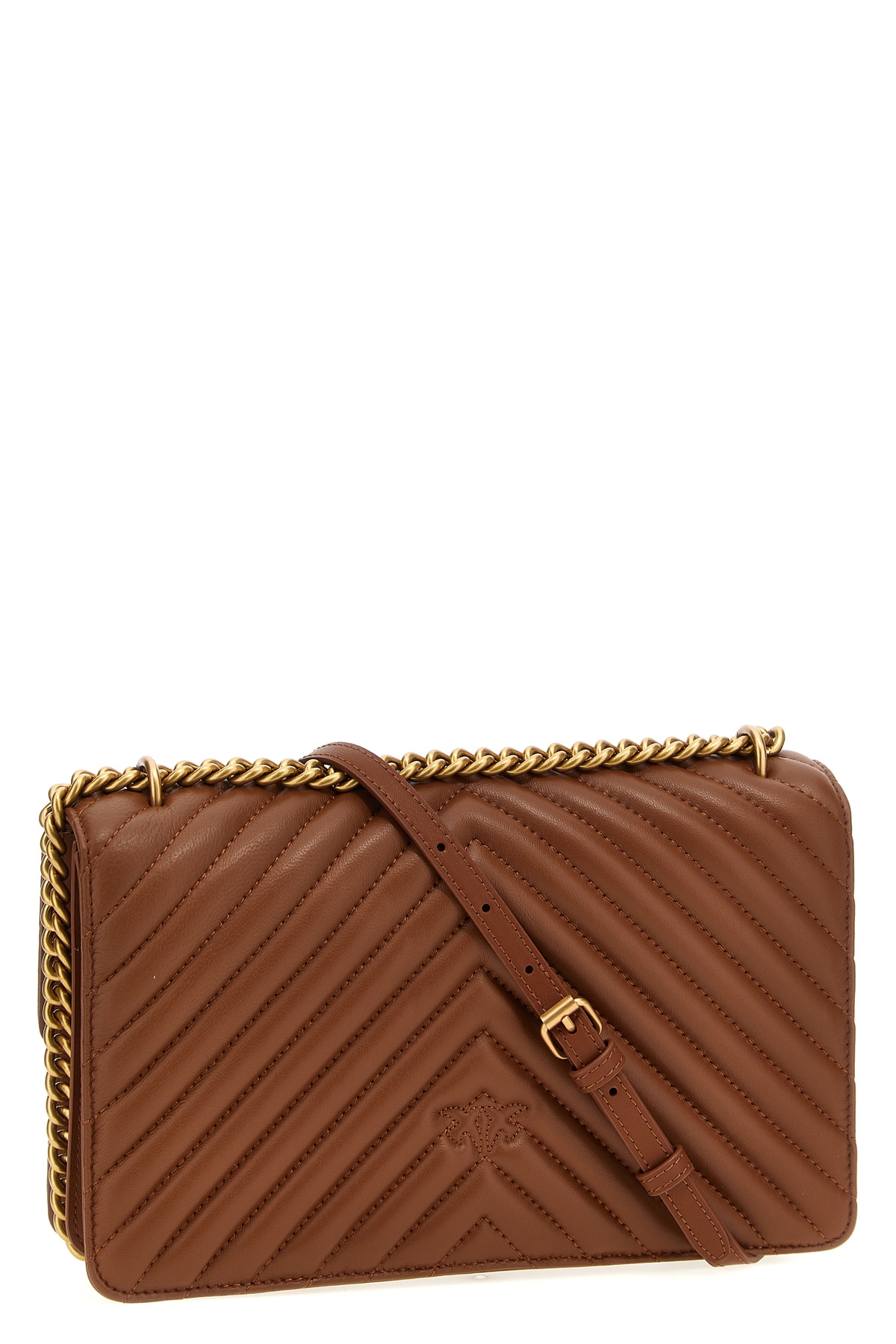 'Love One Classic' chevron nappa leather crossbody bag, magnetic flap closure with metal front logo, chain and leather shoulder strap.