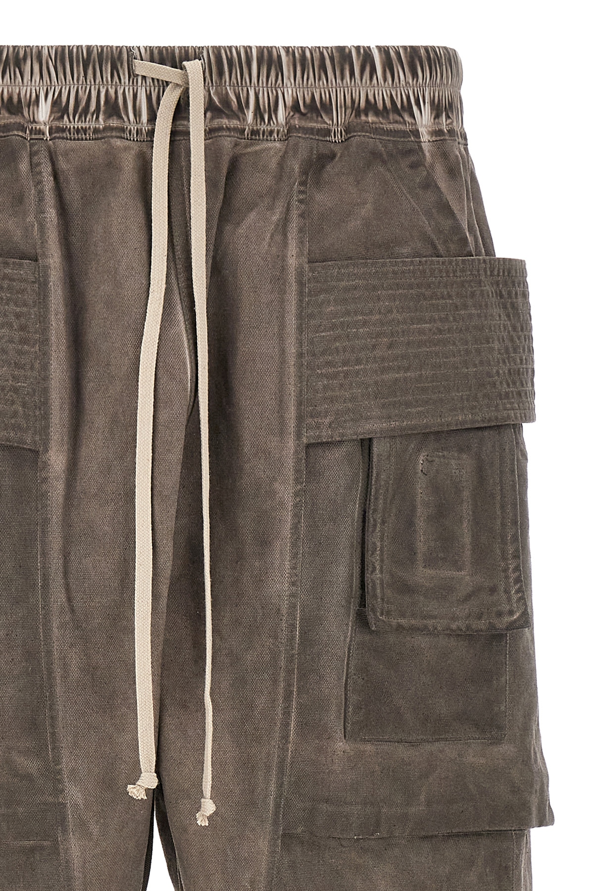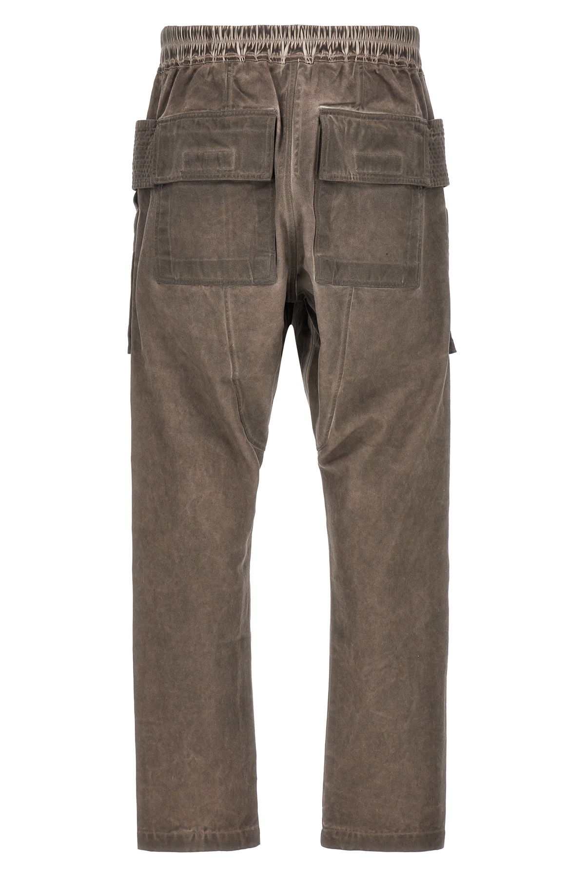 'Creatch Cargo Drawstring' trousers in cotton canvas overdyed and treated with wax finish, low crotch model, elastic with adjustable drawstring at the waist, pockets.