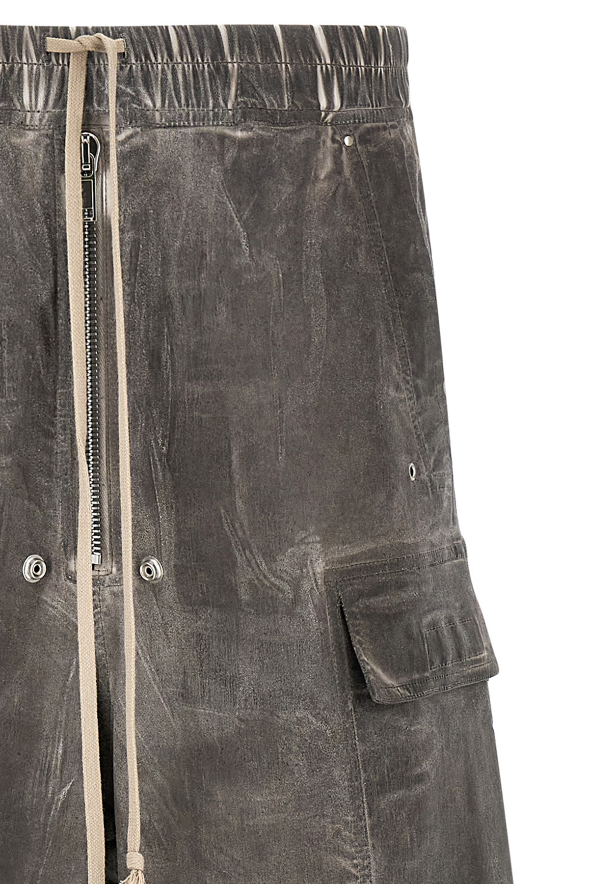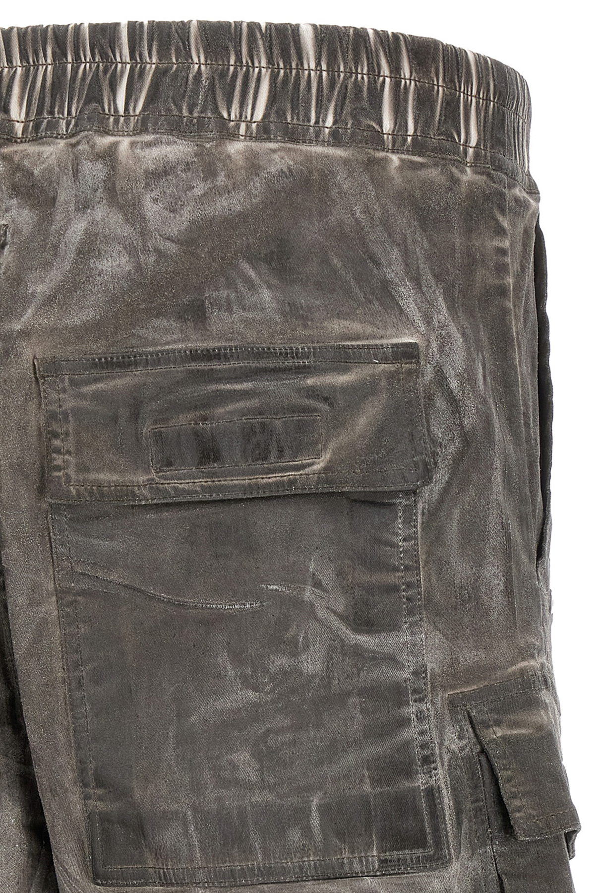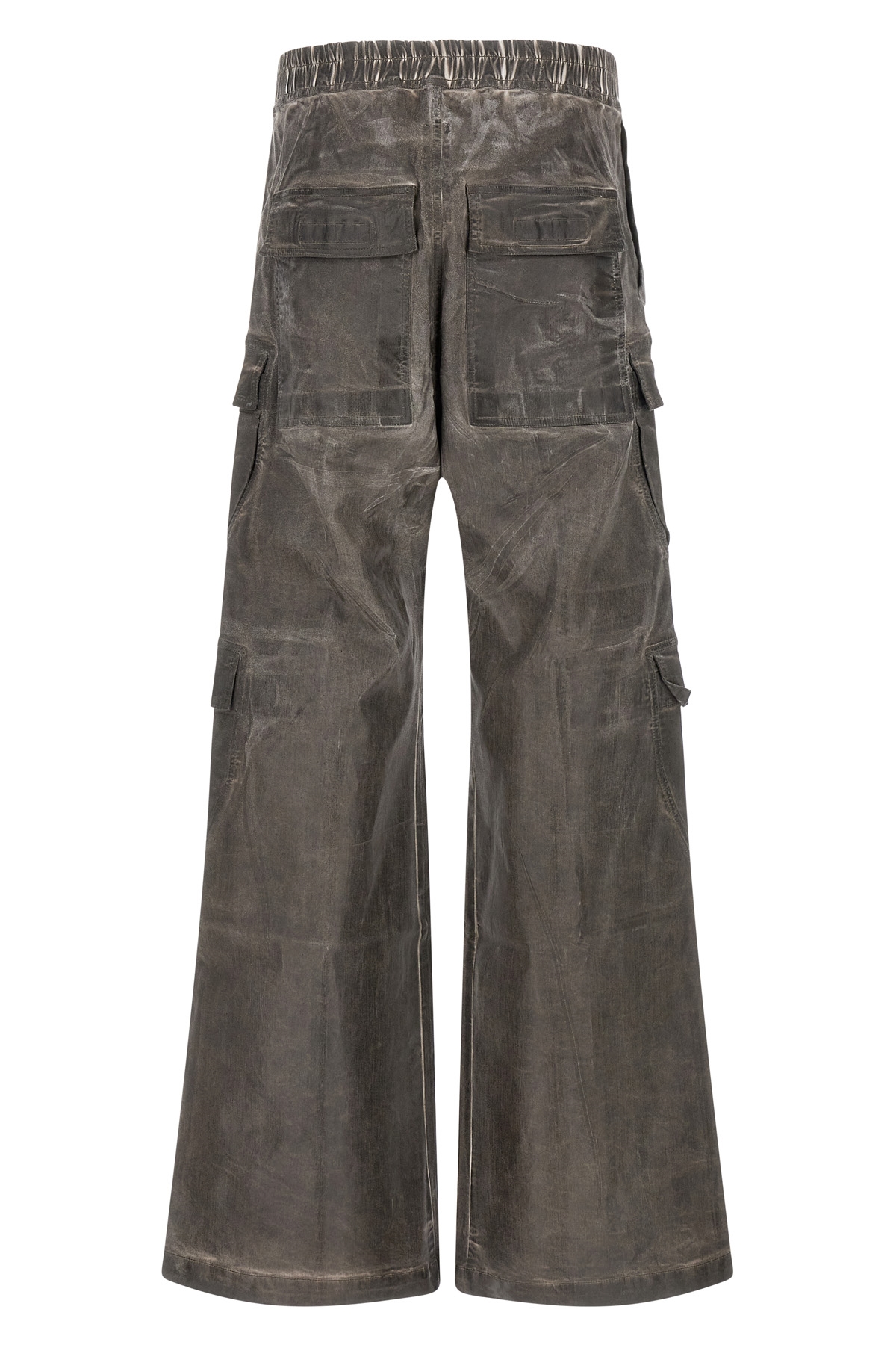'Double Cargo Jumbo Belas' jeans in stretch cotton denim overdyed and treated with wax finish, low crotch and wide leg, elastic with adjustable drawstring at the waist, zip closure, pockets.