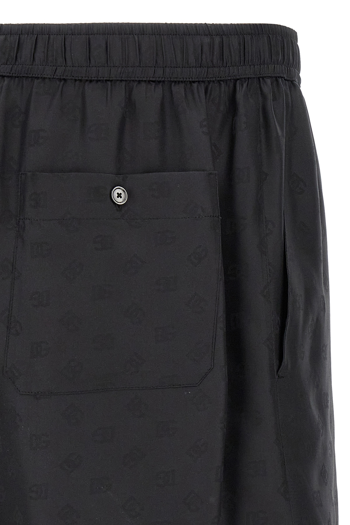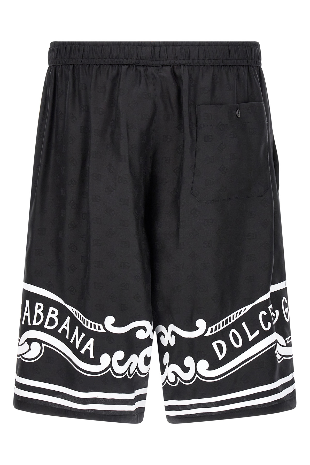 All over DG monogram logo print silk twill bermuda shorts with bandana print details, adjustable drawstring elastic waistband, pockets, side slits at the hem.
