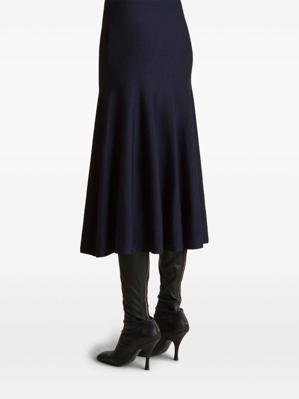 midnight blue slip-on style fitted waistline fluted skirt