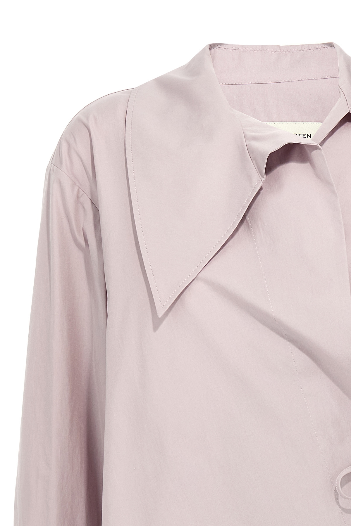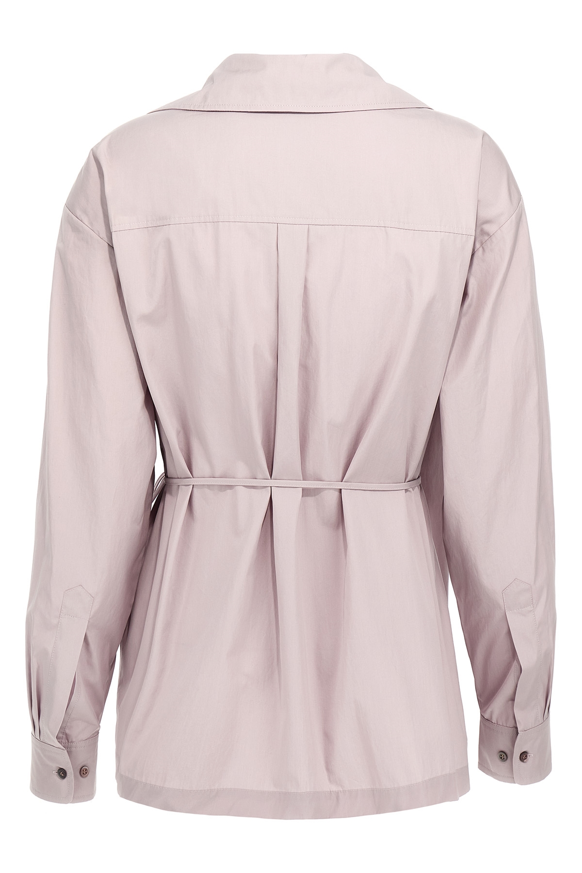 'Cedo' cotton poplin shirt with drawstring closure at the waist, V-neck, long cuffed sleeves.