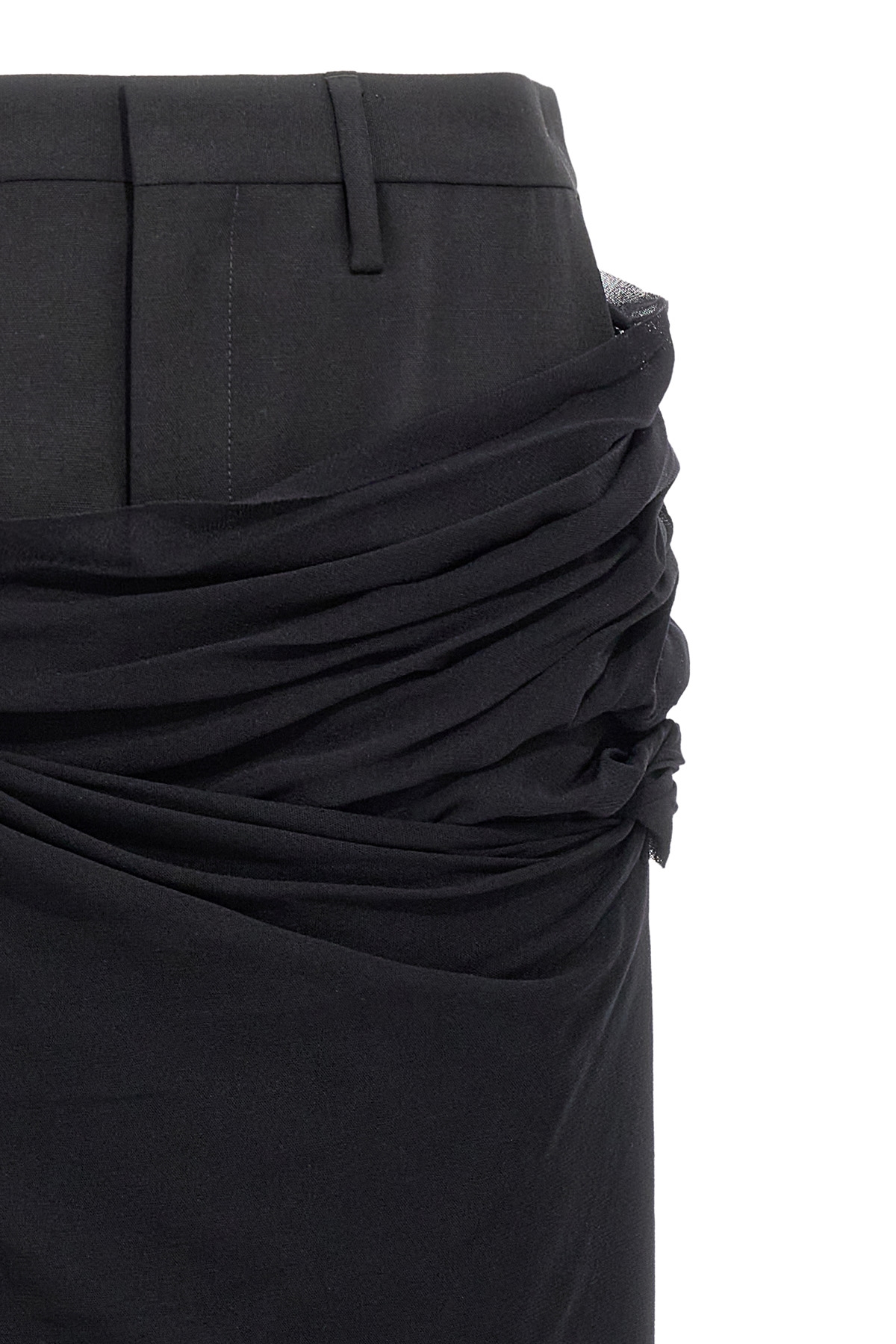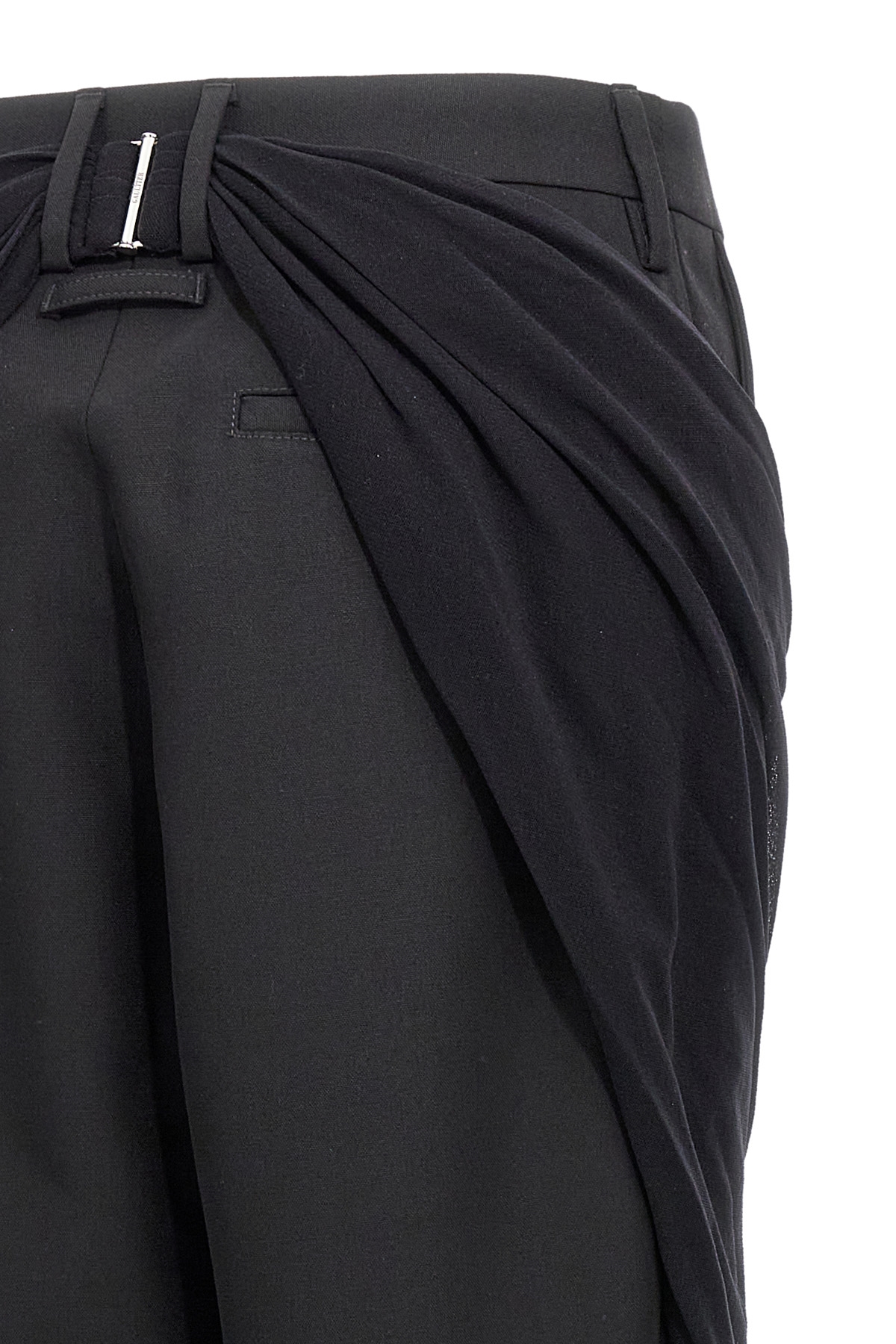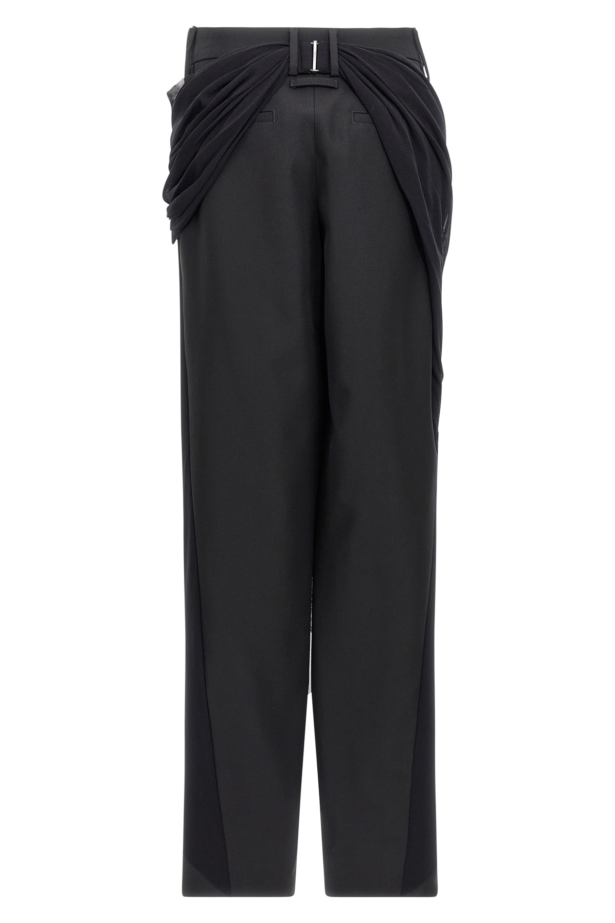 Wool trousers with front tulle draping detail, zip and hook closure, straight leg, high waist model, pockets.