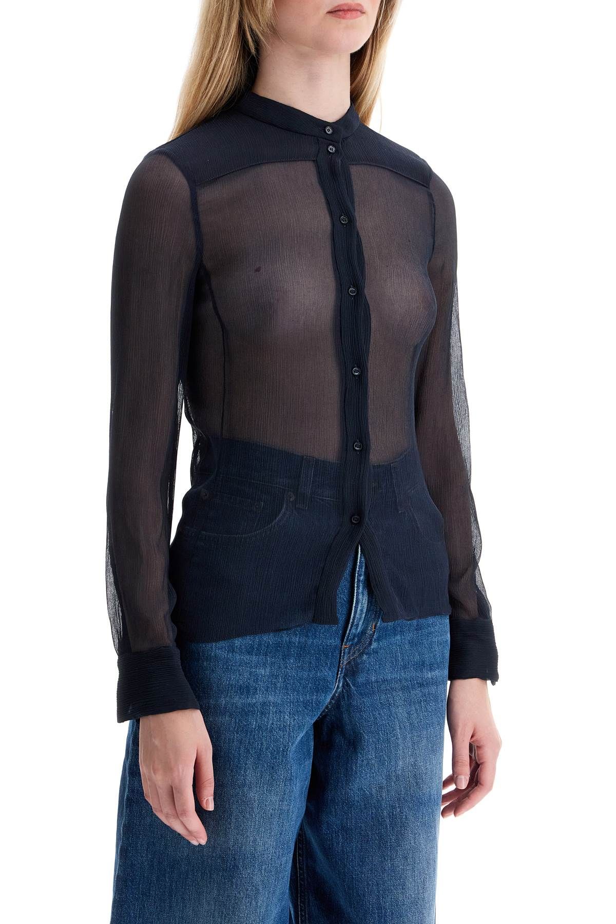 A fitted Chloe shirt in sheer silk crepon, enriched with back and front yoke detailing