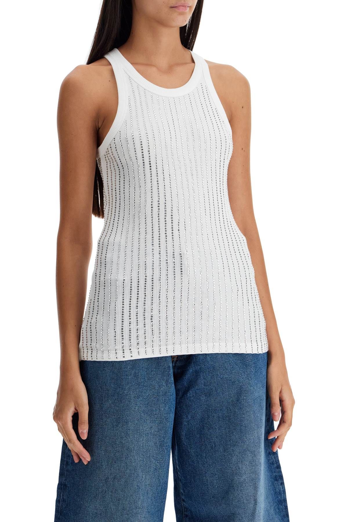 The Attico cotton ribbed jersey tank top, embellished with all-over rhinestones