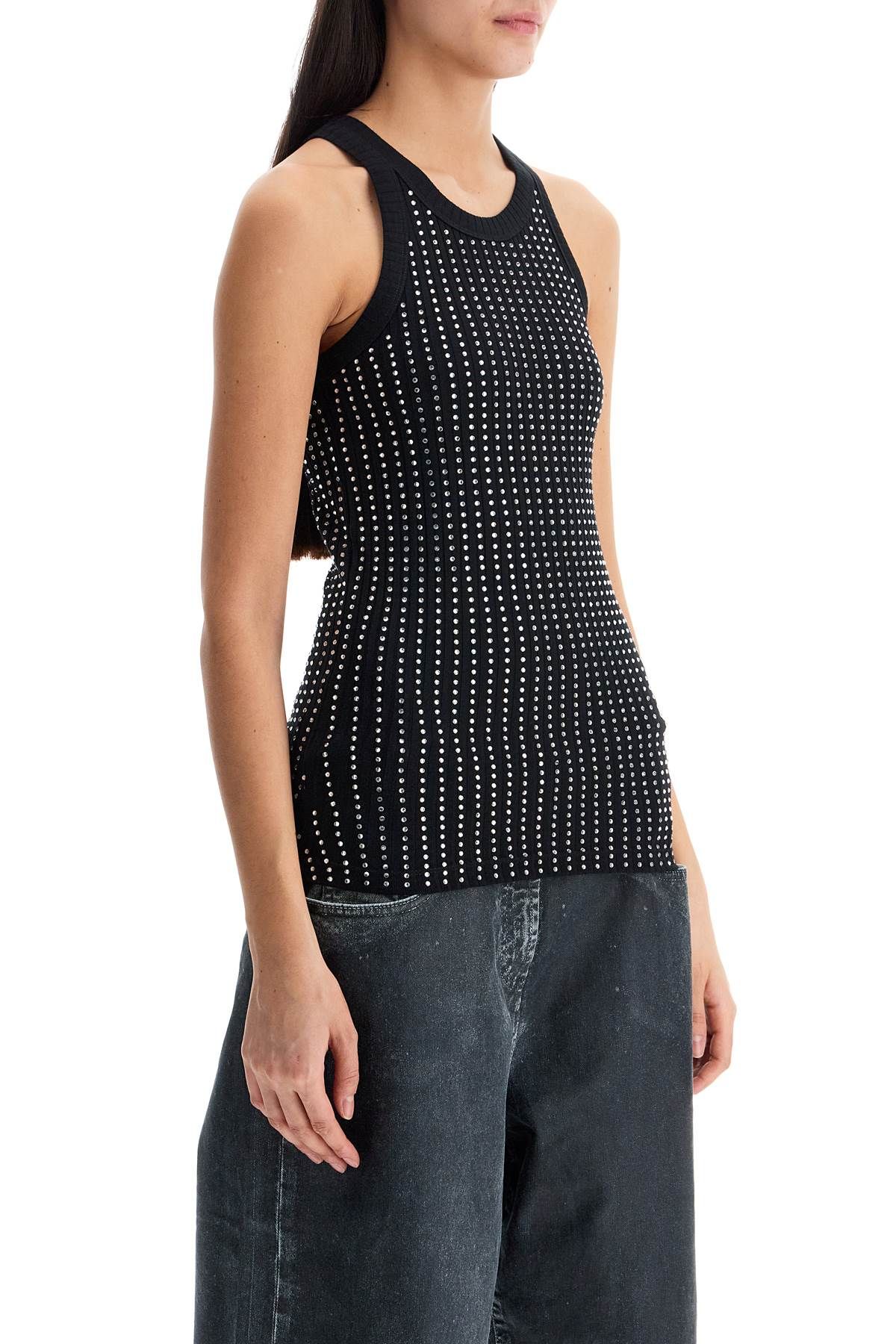 canotta aderente righe verticali con strass nera