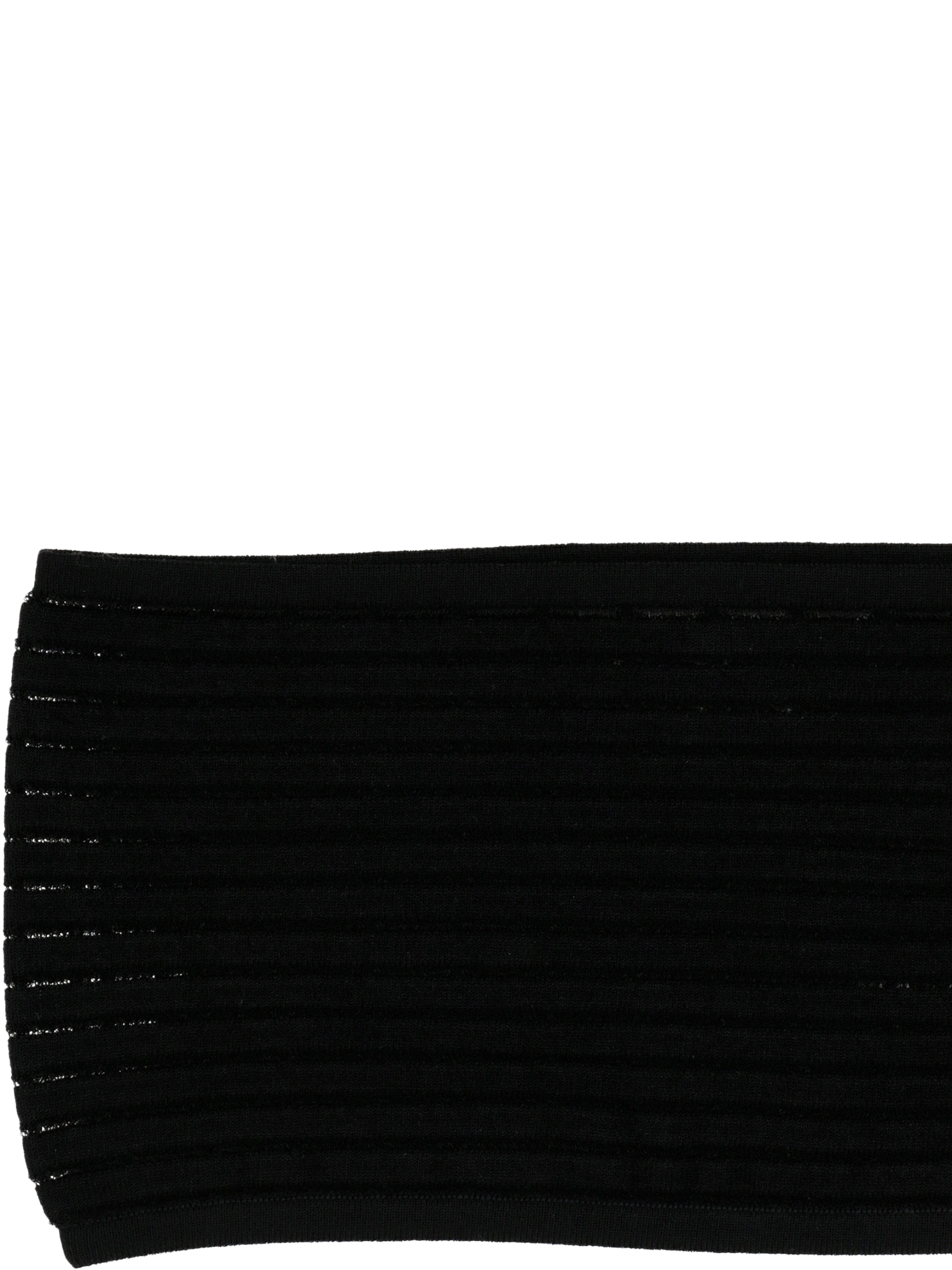 The mesh workmanship gives a sophisticated and sensual effect revealing the skin with a touch of refined lightness The strapless design enhances the decollete while the viscose fabric delicately wraps the bust ensuring comfort and style at all times