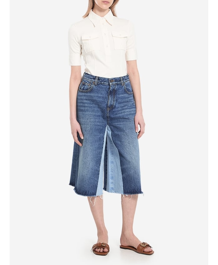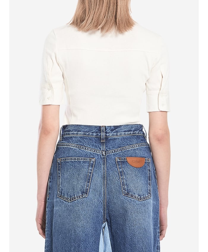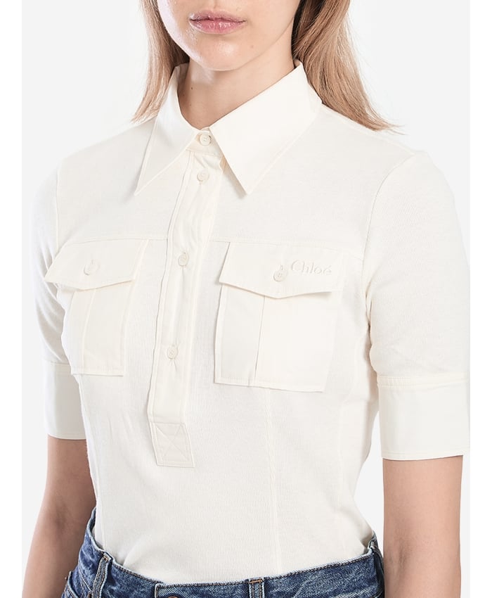 Cream ribbed cotton utility-style short-sleeve polo shirt. It features a classic collar, a four-button placket, two chest pockets with flaps and