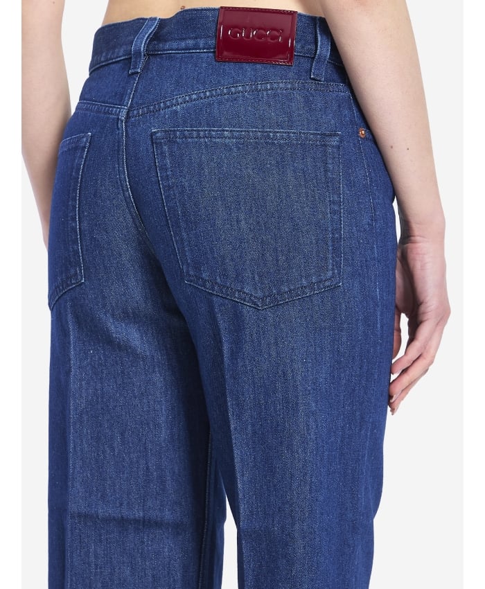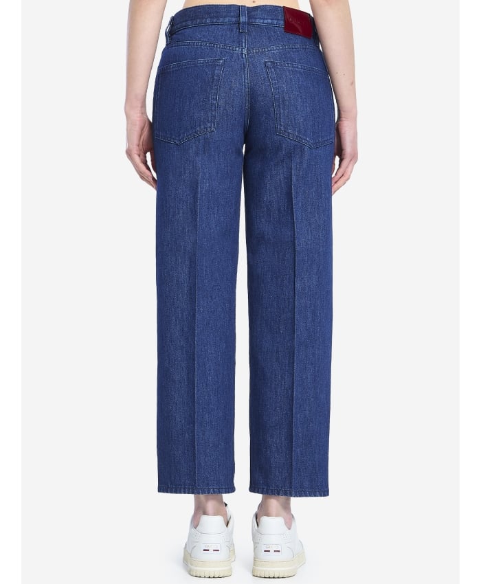 Straight fit jeans in dark blue delave cotton denim. They feature a buttons closure with engraved logos, five pockets, belt loops, front