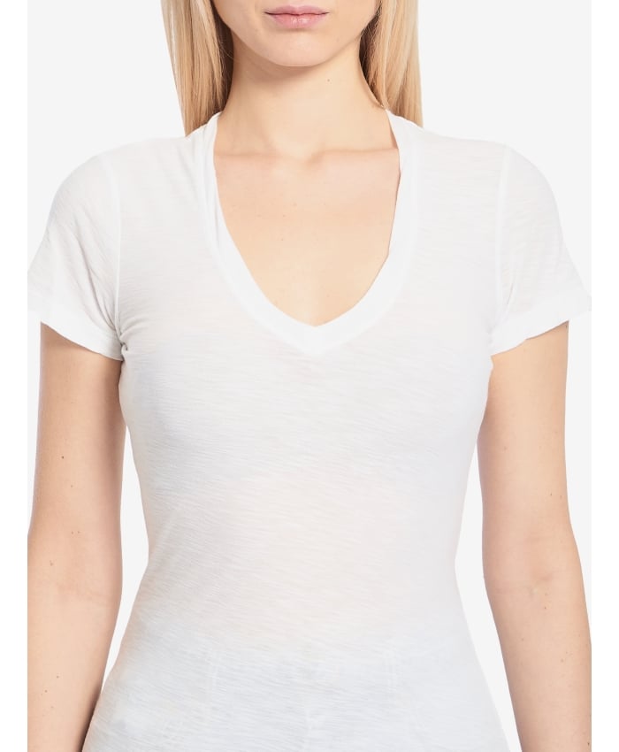 Short-sleeve V-neck t-shirt in lightweight slub cotton in white. Regular fit.The model is 178cm tall and wears a size 0 US.