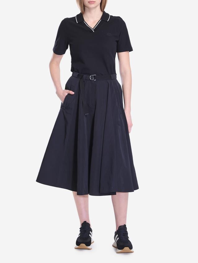 Black cotton piqué polo shirt with a black silicone logo patch on the chest. It features short sleeves, a pointed collar, a