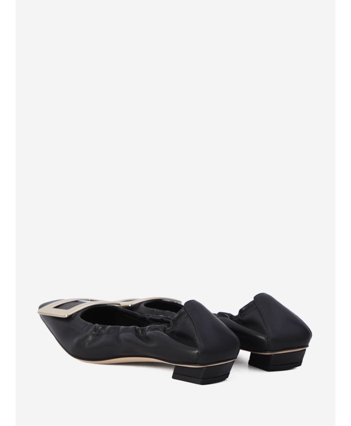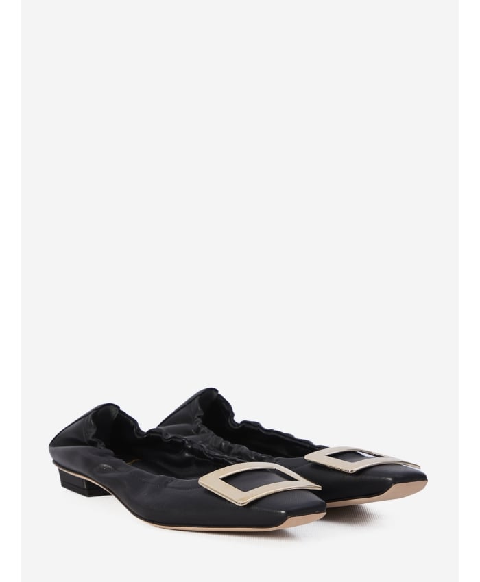 Belle Vivier ballet flats in black nappa leather with an elastic trim. They feature a square toe, a square metal buckle with an engraved logo, an