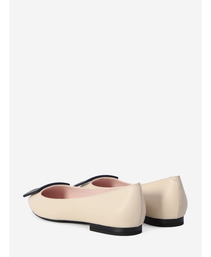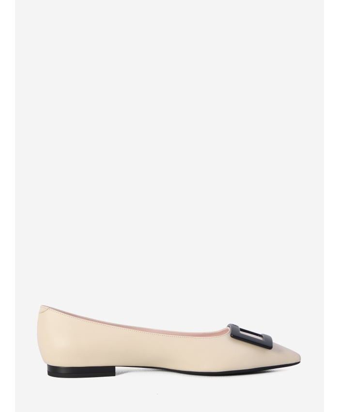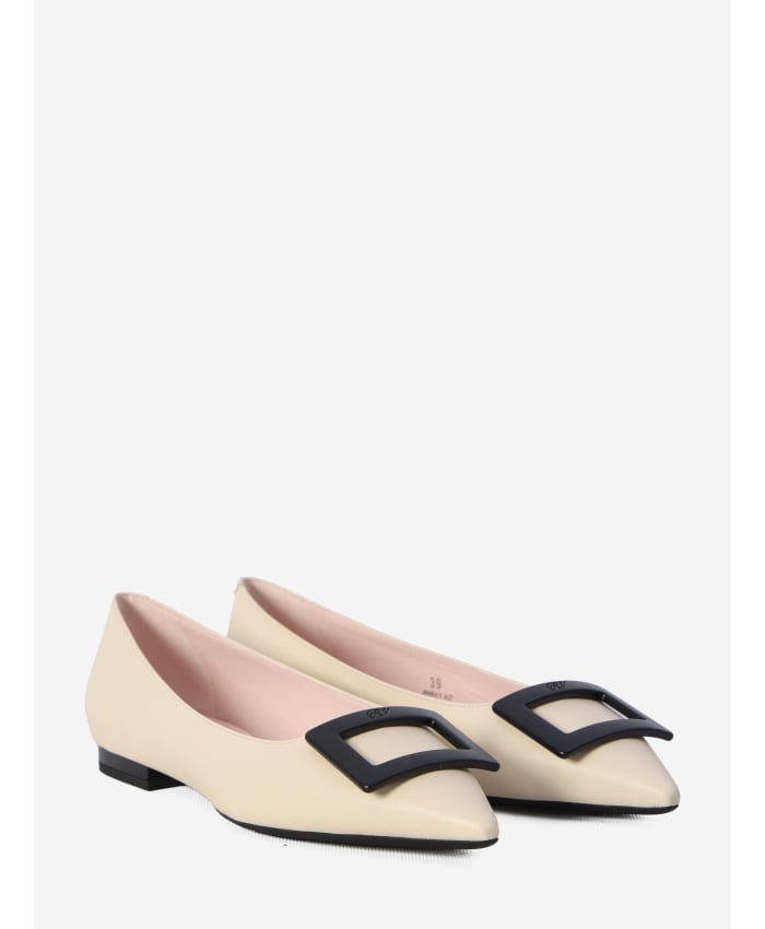 Gommettine ballerina flats in white leather with square and branded opaque black buckle. Pointed design and low heel. Rubber sole. Dust bag included.