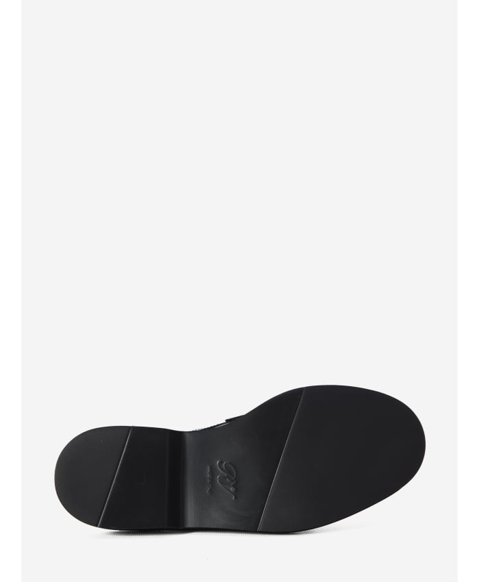 Viv' Rangers mules in glossy black calfskin with a gold buckle and crystals on the toe. They feature grosgrain details on the toe, visible