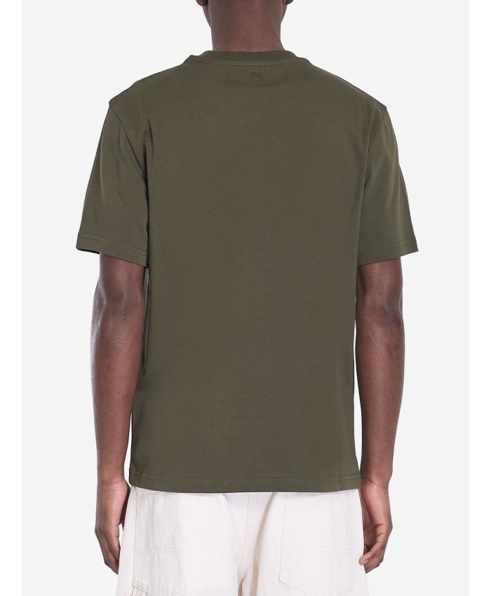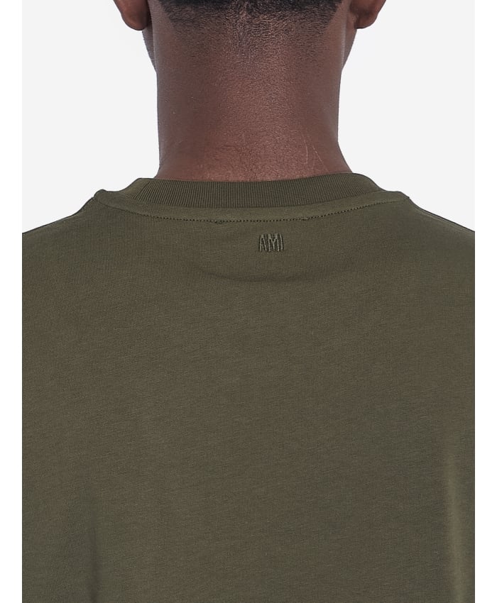Military green cotton short-sleeve crewneck t-shirt. It features a tone-on-tone embossed Ami de Coeur logo on the chest and a ribbed crewneck.