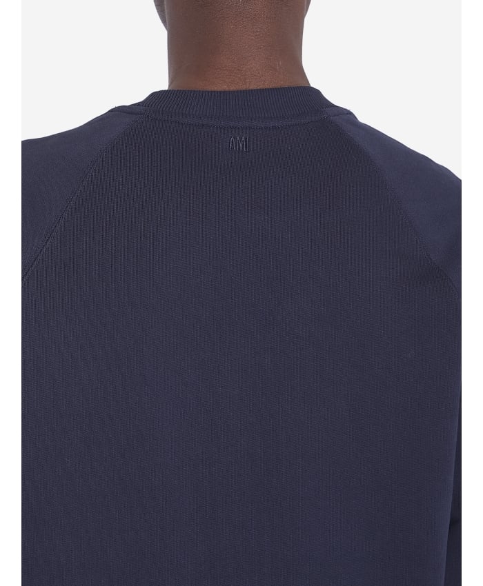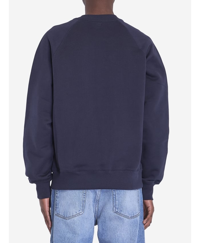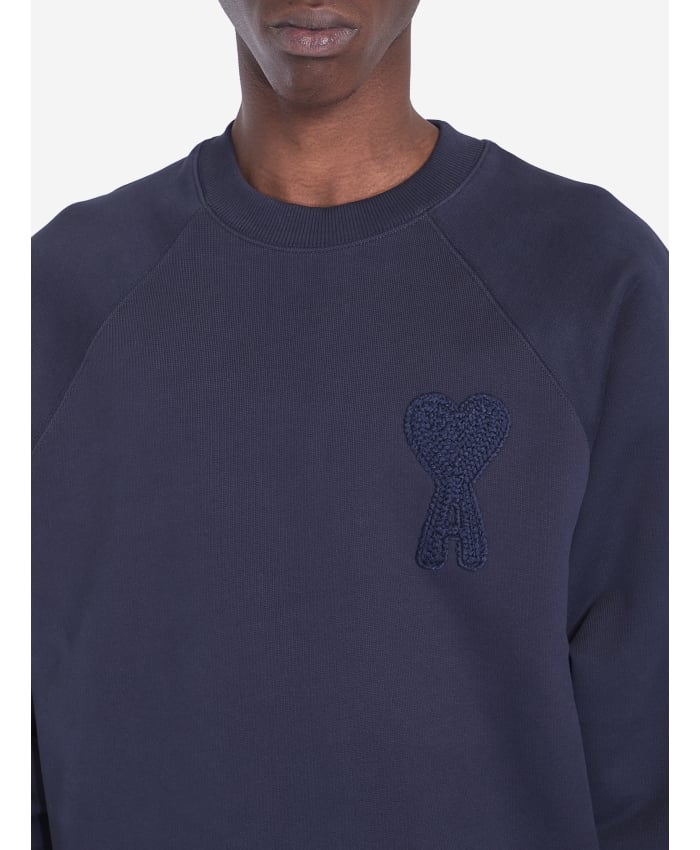 Crewneck sweatshirt in blue night cotton. It features a woven Ami de Coeur logo on the chest and ribbed crewneck, cuffs, and hem.The model is 186cm