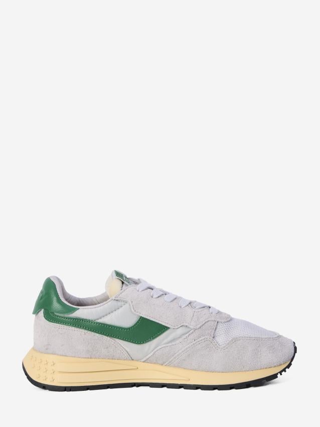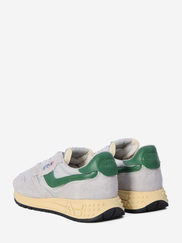 Reelwind Low sneakers in grey nylon and suede with green leather inserts. They features an ultra-light Phylon rubber sole, lace-up closure,