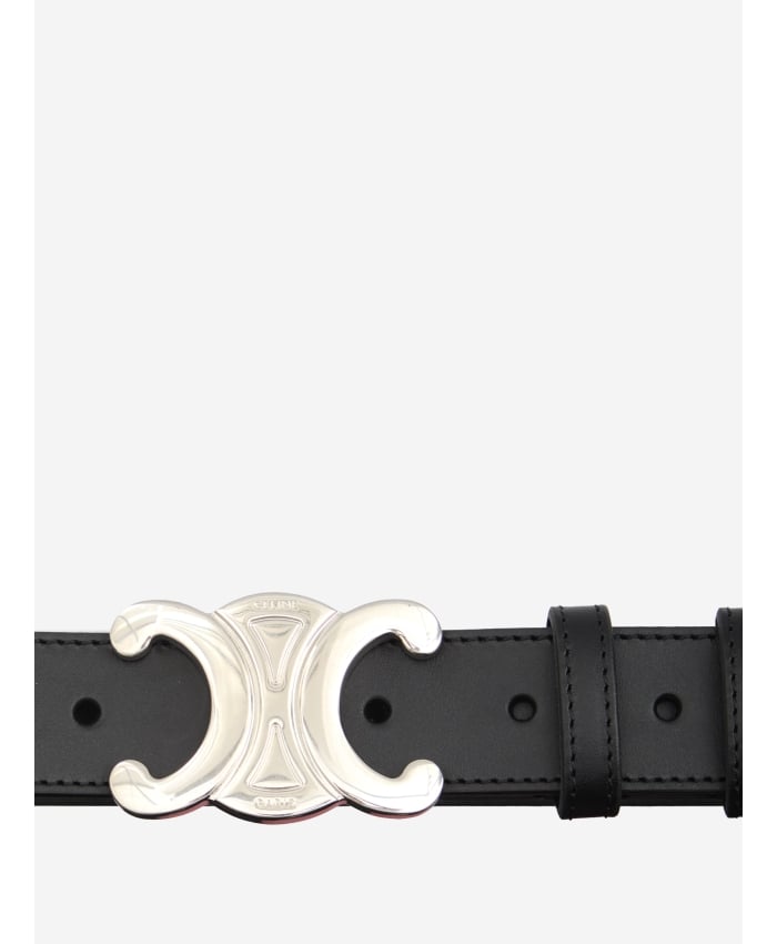 Triomphe belt in black calfskin leather with a silver-tone metal Triomphe buckle. Adjustable design. Dust bag included. Any imperfections in the