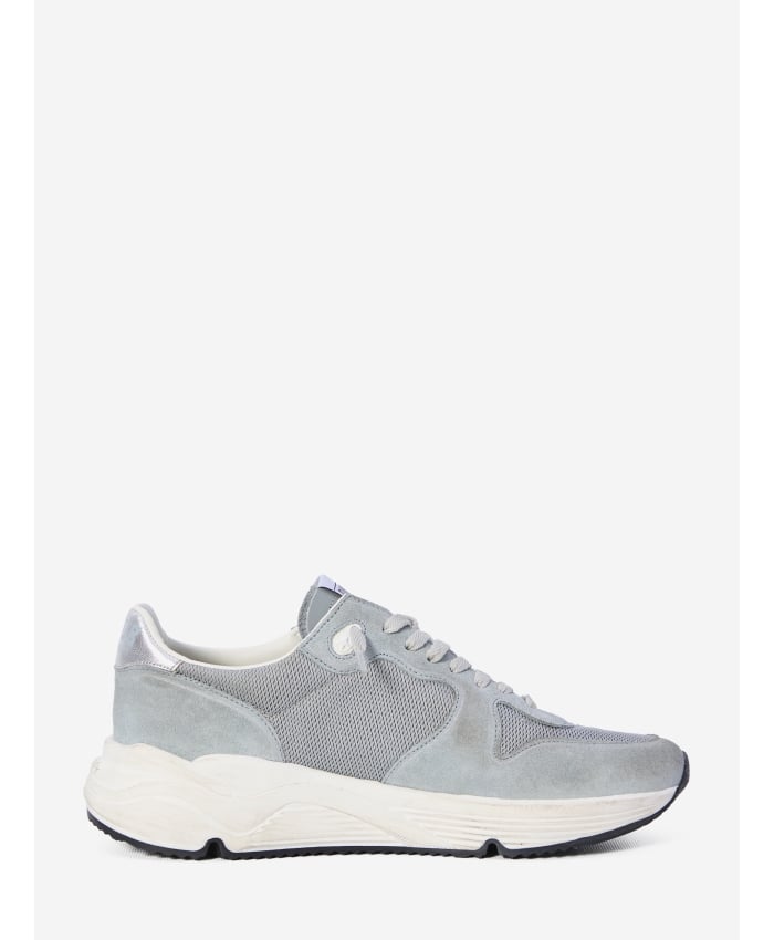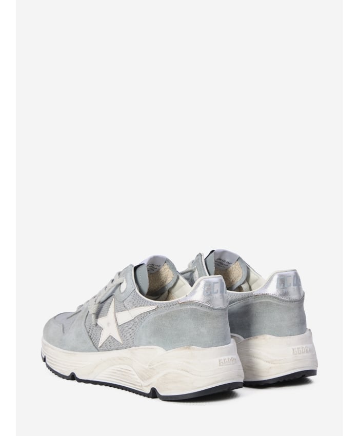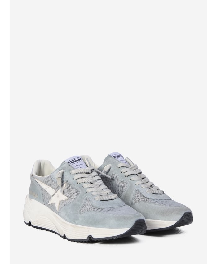 Running Sole sneakers in mesh with vintage-treated gray nappa suede inserts. They feature a round toe, lace-up closure, a white leather star on one