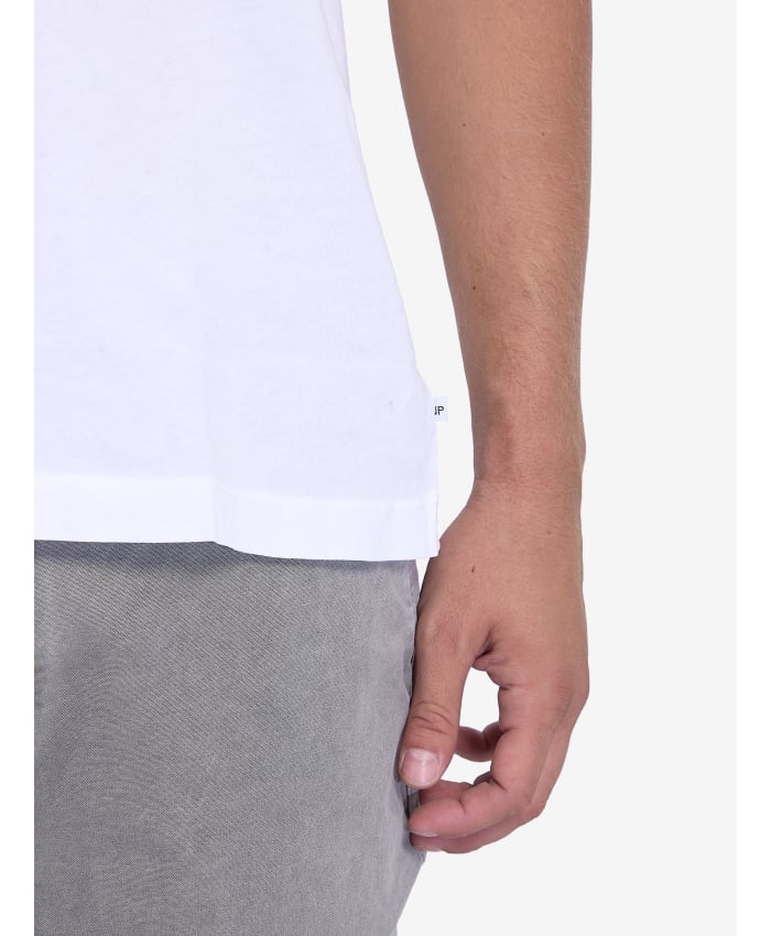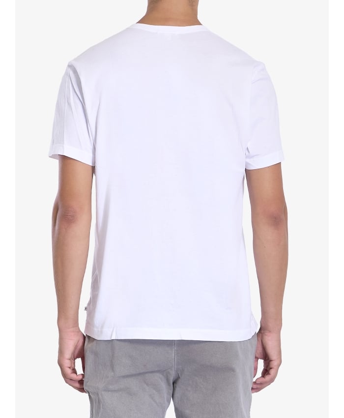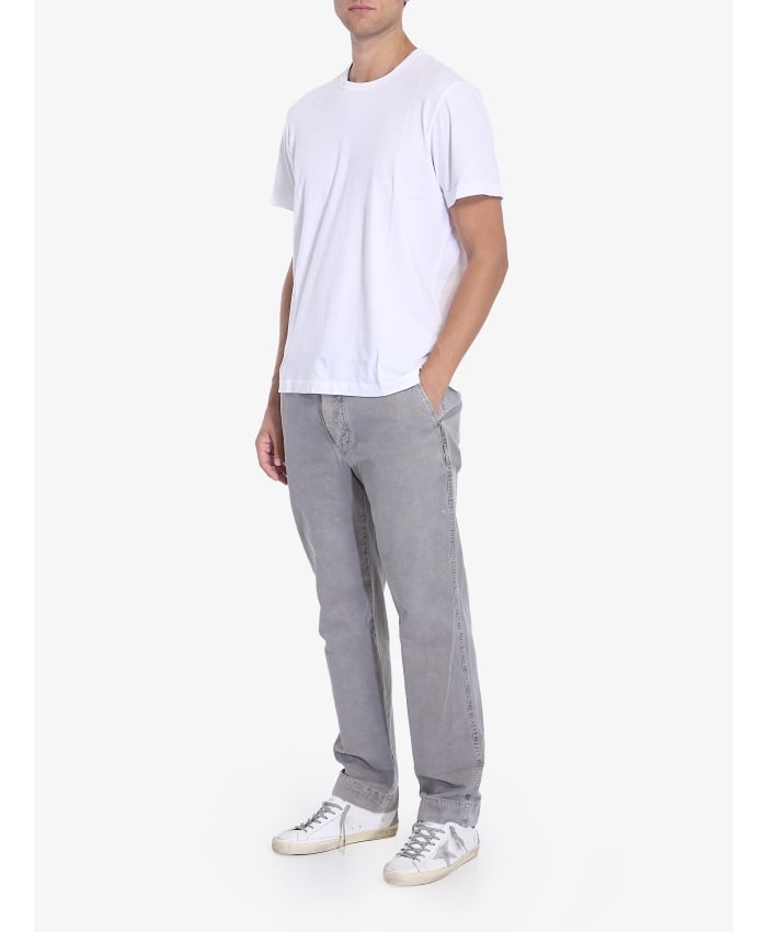 Short-sleeved crewneck t-shirt in white combed cotton. Ribbed collar. Regular fit.