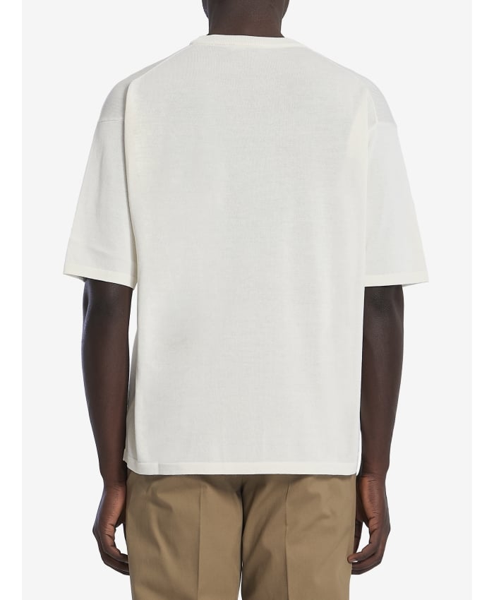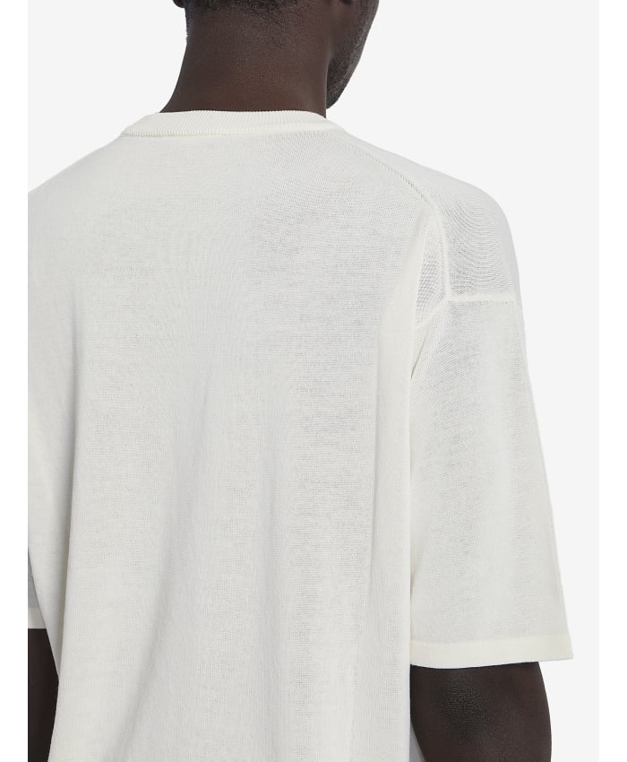 Short-sleeved crewneck t-shirt in ecru thin cotton knit. Ribbed crewneck and hem.The model is 187cm tall and wears a size IT 50.