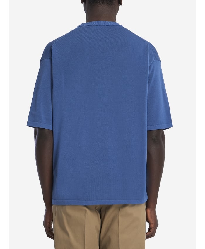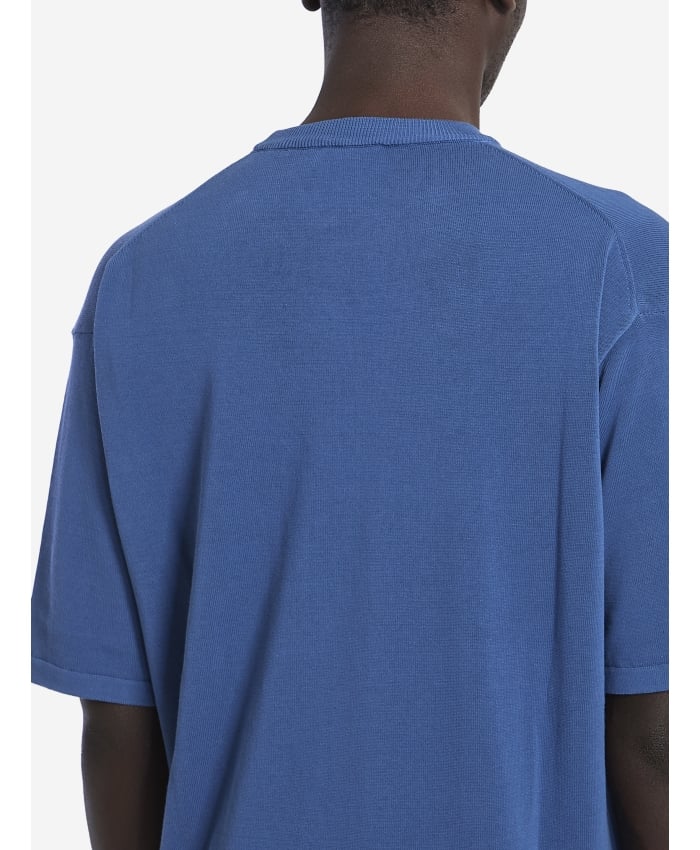 Short-sleeved crewneck t-shirt in denim blue thin cotton knit. Ribbed crewneck and hem.The model is 187cm tall and wears a size IT 50.