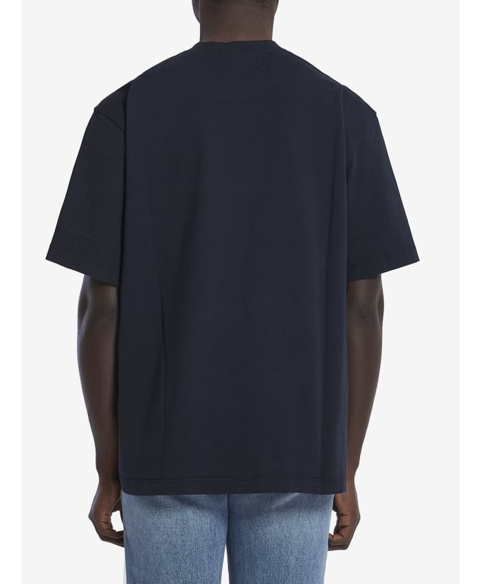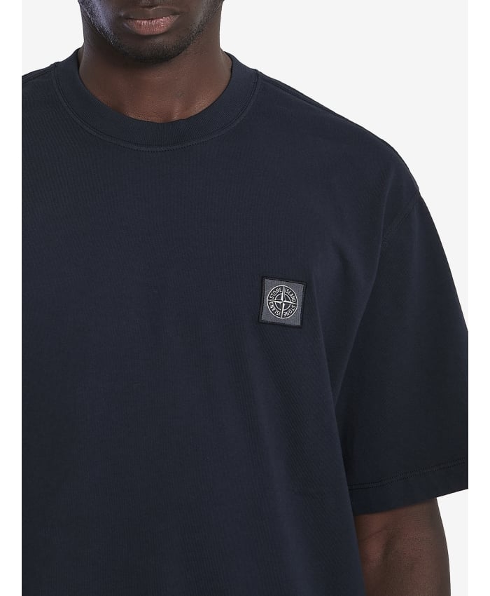 Blue cotton jersey short-sleeve crewneck t-shirt. It features a Stone Island Compass patch on the chest and a ribbed crewneck. Regular fit.The model