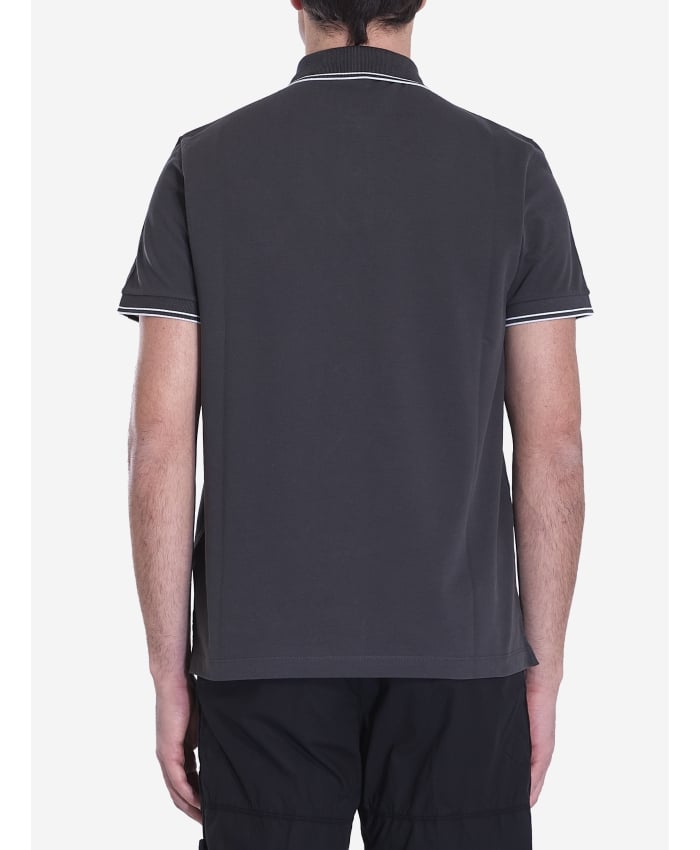 Short-sleeve polo in dark grey pique cotton. It features a classic collar, a front placket with three buttons, the Stone Island Compass logo on
