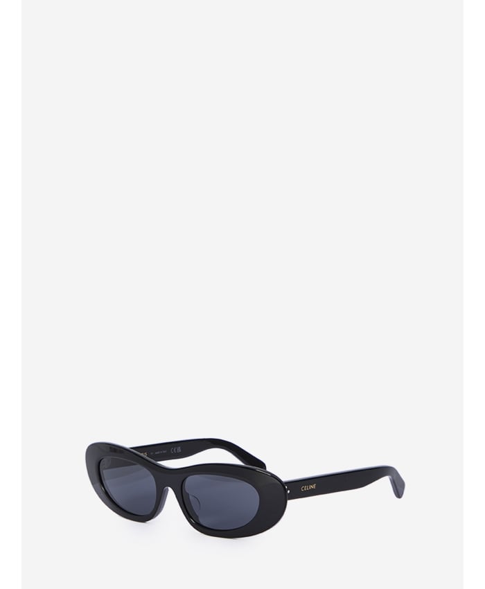 Cat Eye sunglasses in black acetate with three dots and logo on the temples.