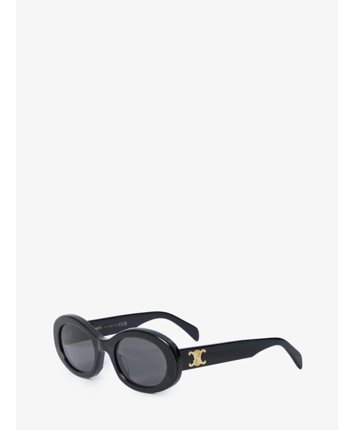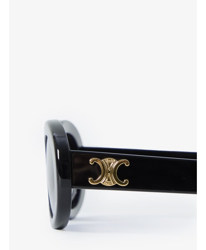 Triomphe 01 sunglasses in black acetate with smoke lenses and Triomphe signature on temples. UVA and UVB protection.