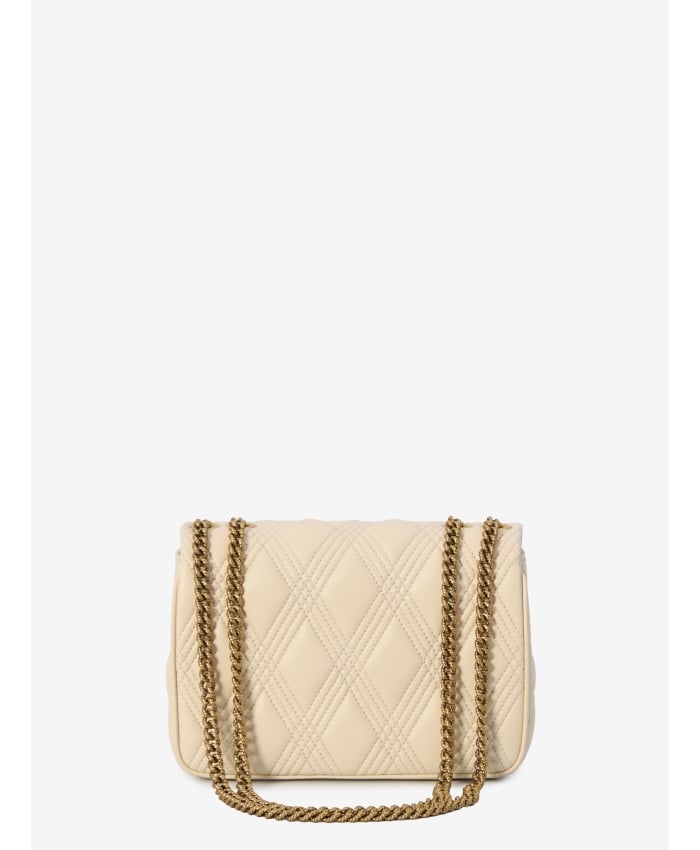 Medium Quiltie 67 bag in white quilted nappa leather with a diamond pattern and tone-on-tone stitching. It features a snap closure with an antique