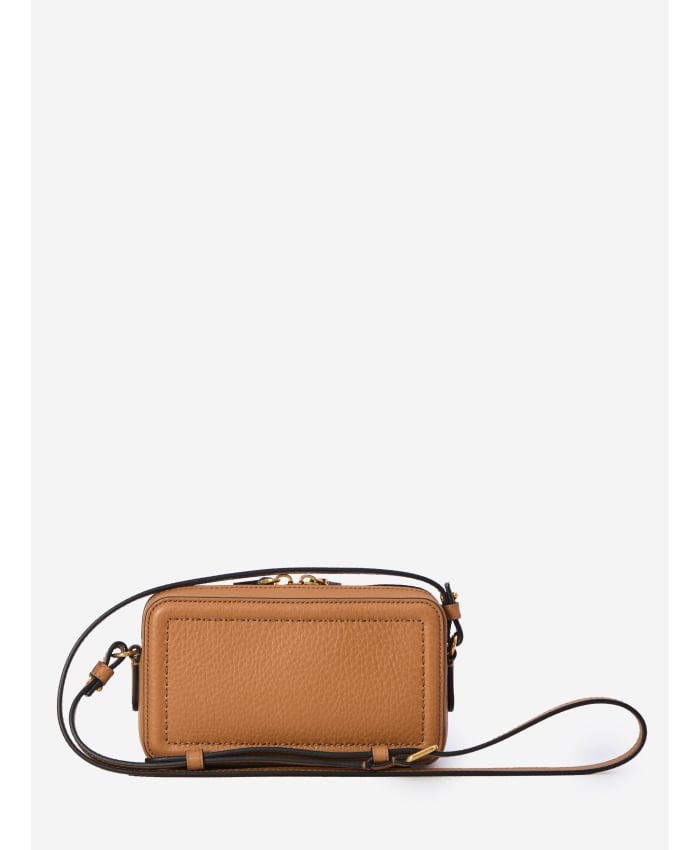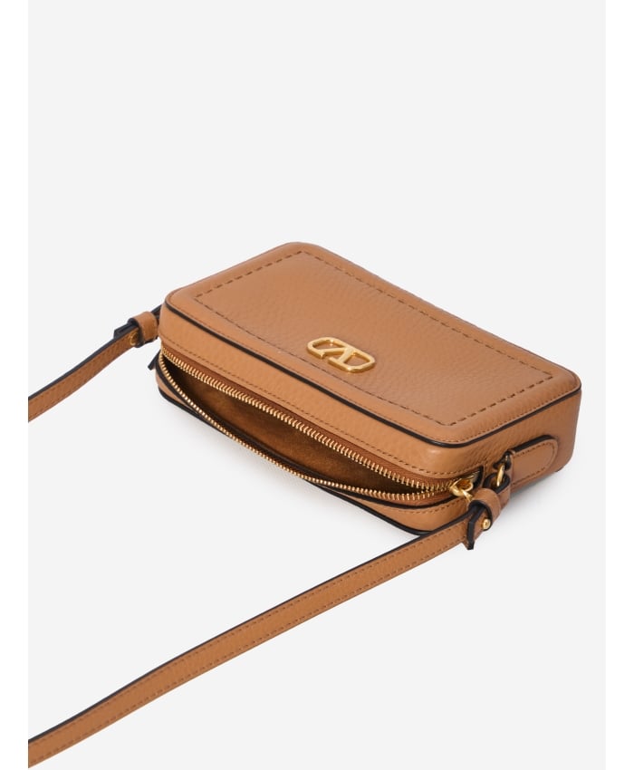 Mini Alltime crossbody bag in almond brown grained calfskin leather. It features an antique brass VLogo Signature on the front, a zip closure, an