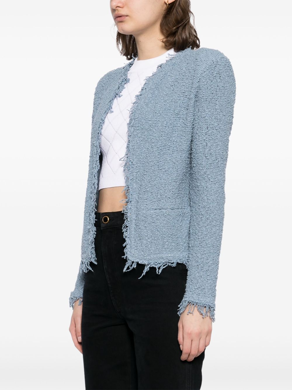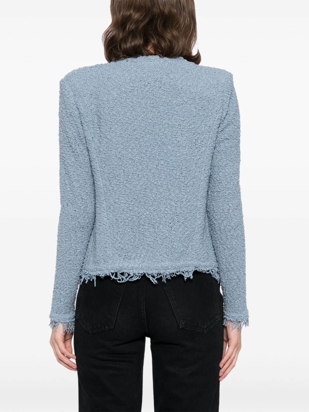 sky blue open front shoulder pads long sleeves two side patch pockets