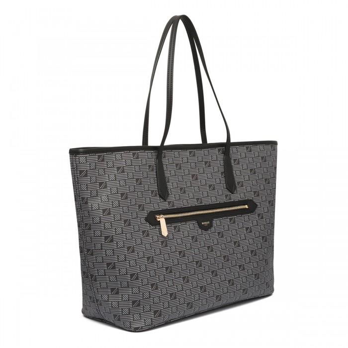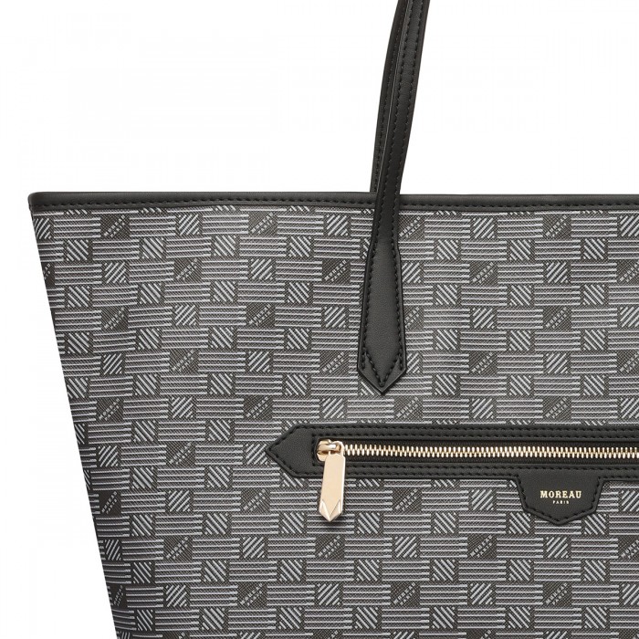 Black signature Bionet Monaco large tote bag from Maison Moreau featuring tonal eco calf leather, yacht-inspired chain closure, zipped pocket, long handles and internal pocket.