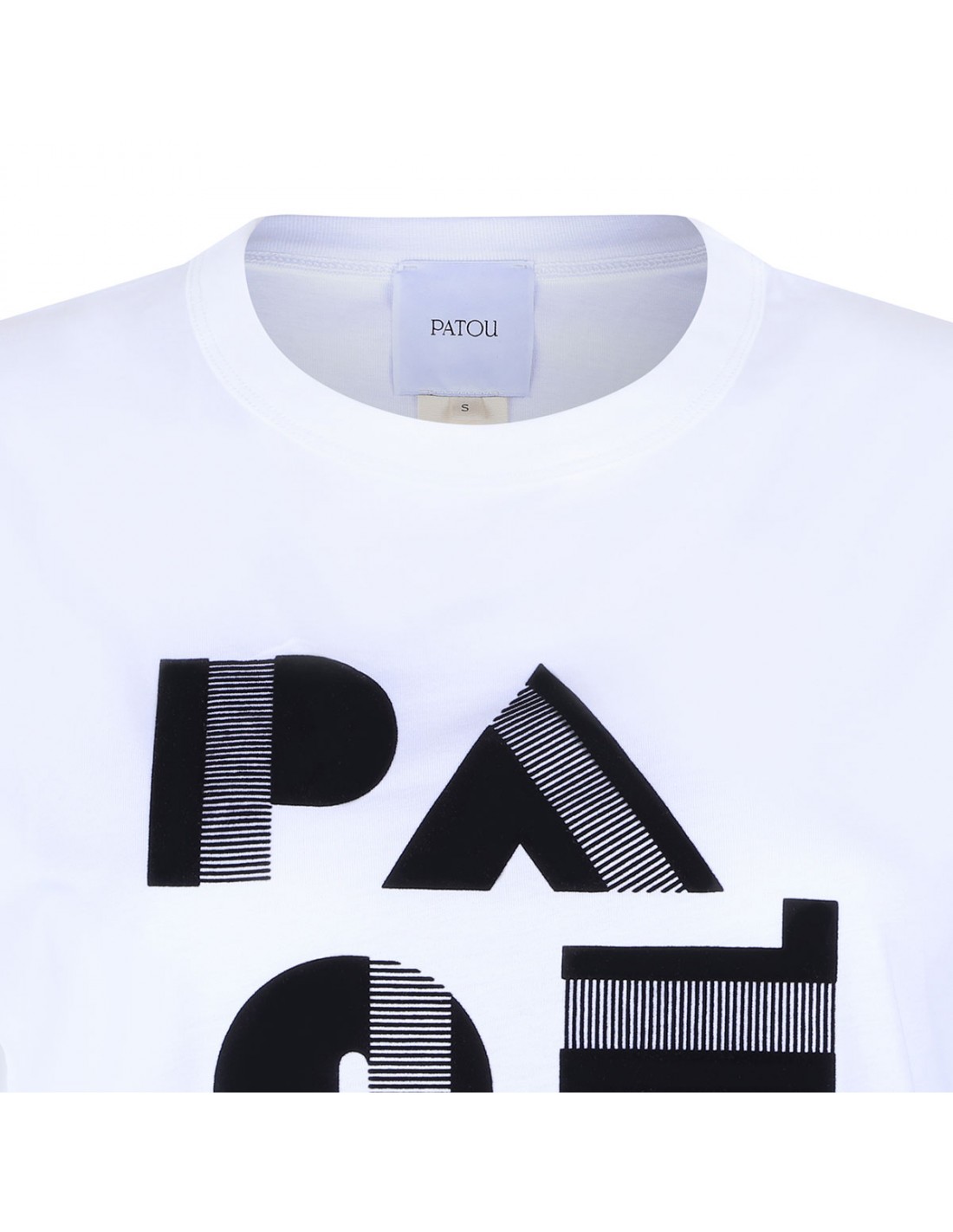 White organic cotton T-shirt from Patou featuring Art Deco Patou logo on front, crewneck, short sleeves and regular fit.