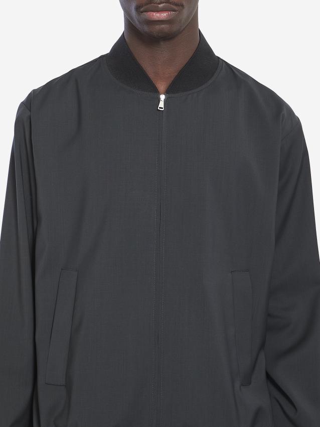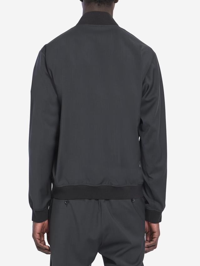 Blus Tropical jacket in lead-colored wool. It features a classic baseball collar, a front zip closure, two side pockets, and ribbed collar, cuffs,