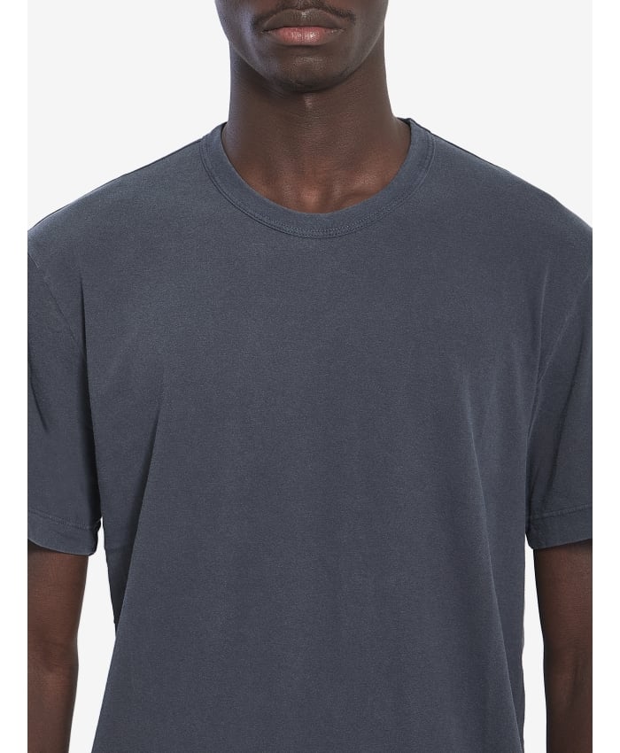 Short-sleeved crewneck t-shirt in blue combed cotton. Ribbed collar. Regular fit.The model is 186cm tall and wears size US 03.