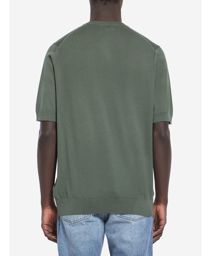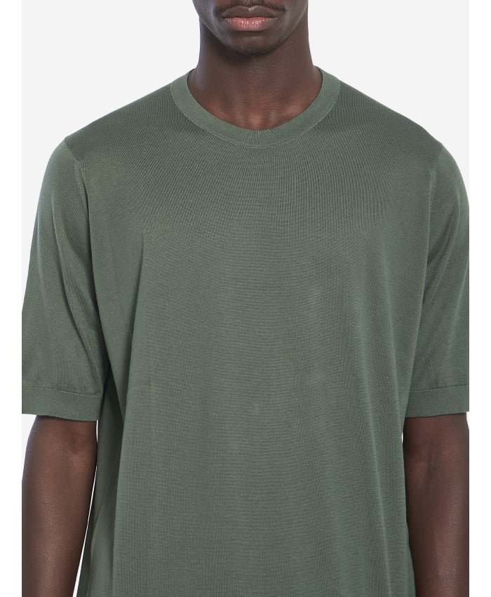 Short-sleeved crewneck Kempton t-shirt in soft military green Sea Island cotton. Ribbed collar, cuffs and hem. Regular fit. The model is 186cm tall
