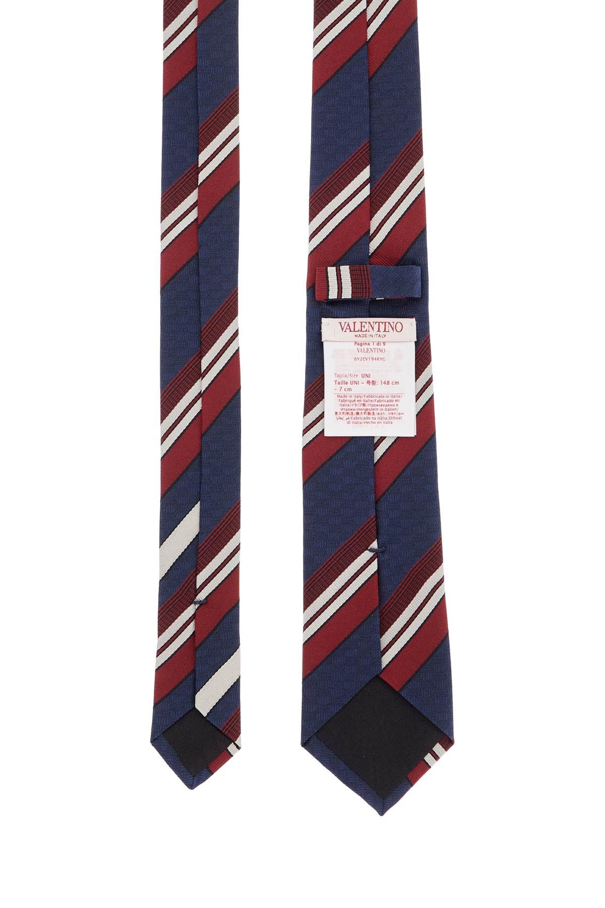 The Valentino Garavani tie in dark blue silk with bordeaux stripes offers Italian elegance