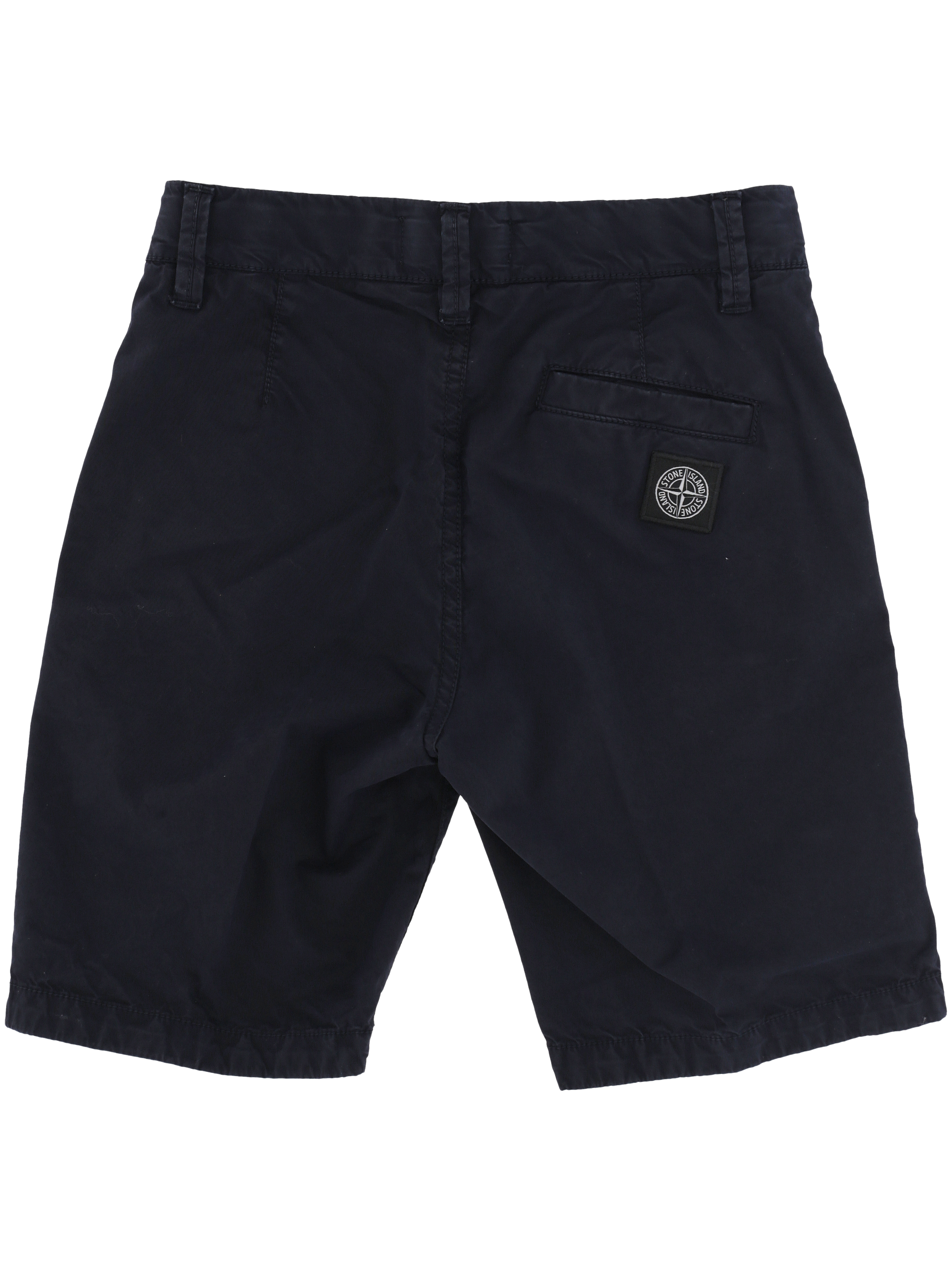 navy blue concealed fly and button fastening belt loops two diagonal pockets to the sides rear welt pocket