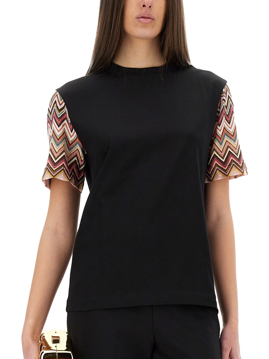 > 티셔츠 위드 지그 재그 니트 슬리브