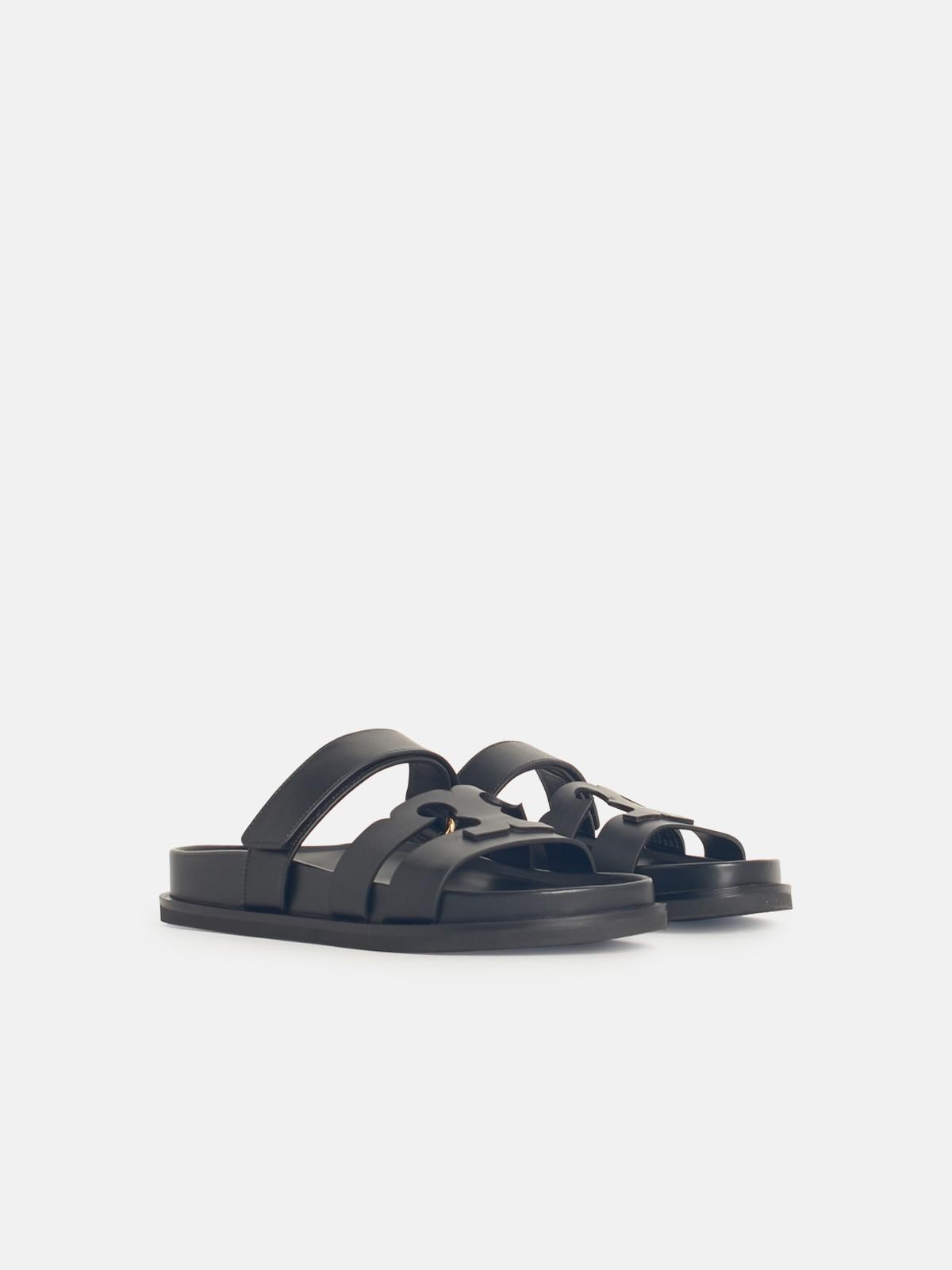INES 블랙 레더 슬리퍼