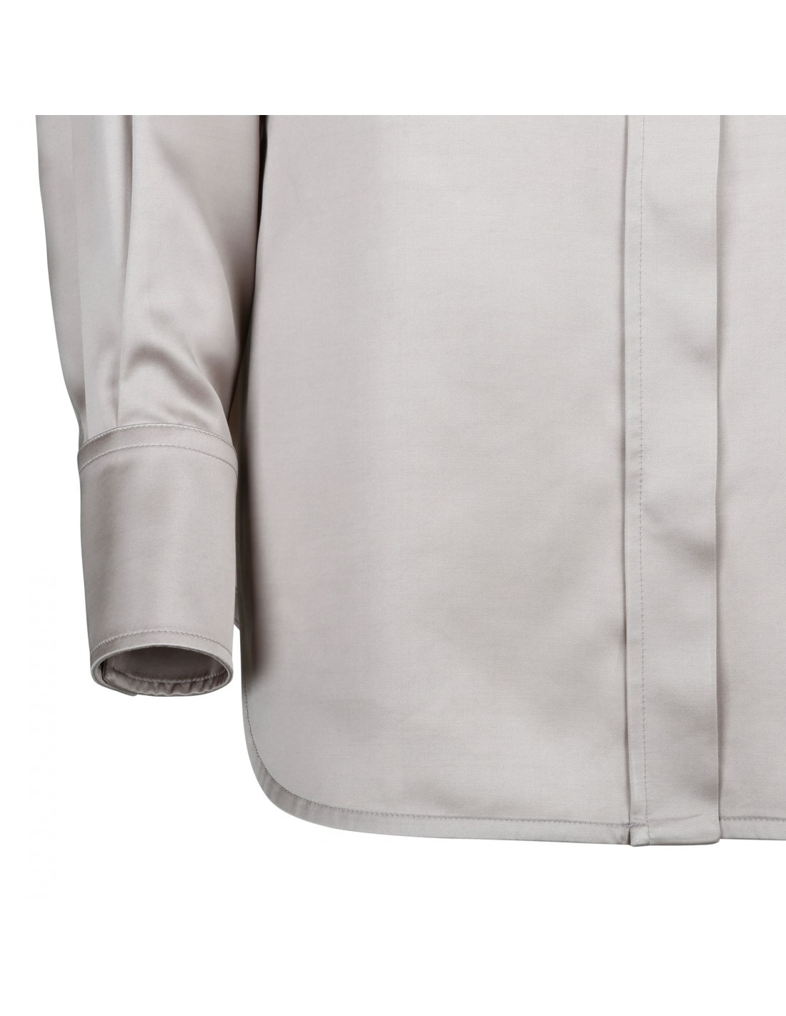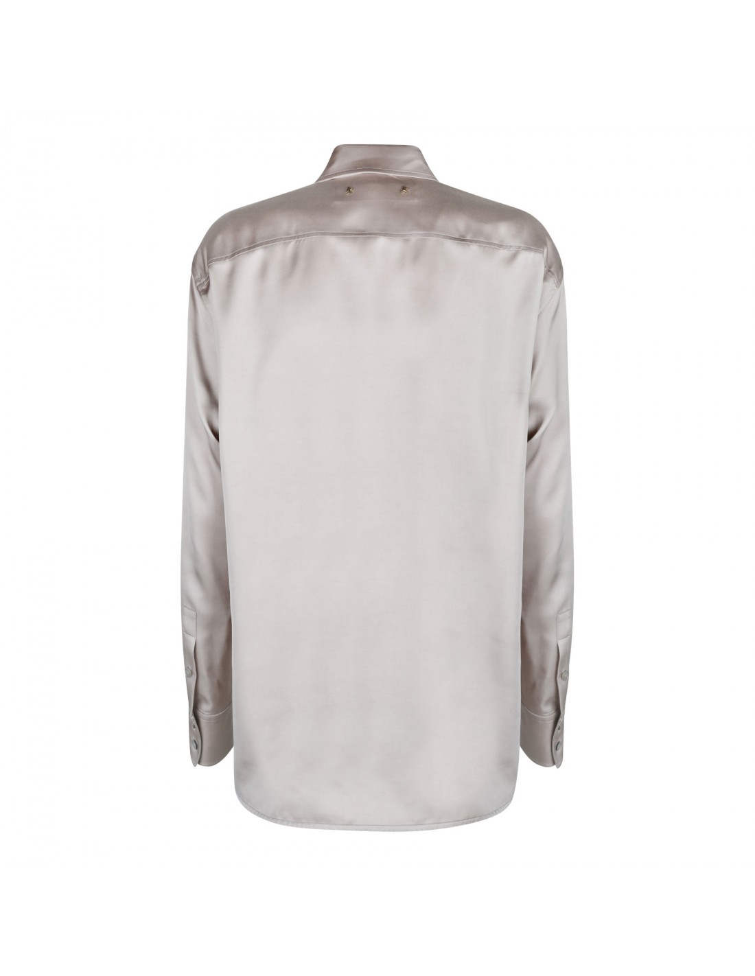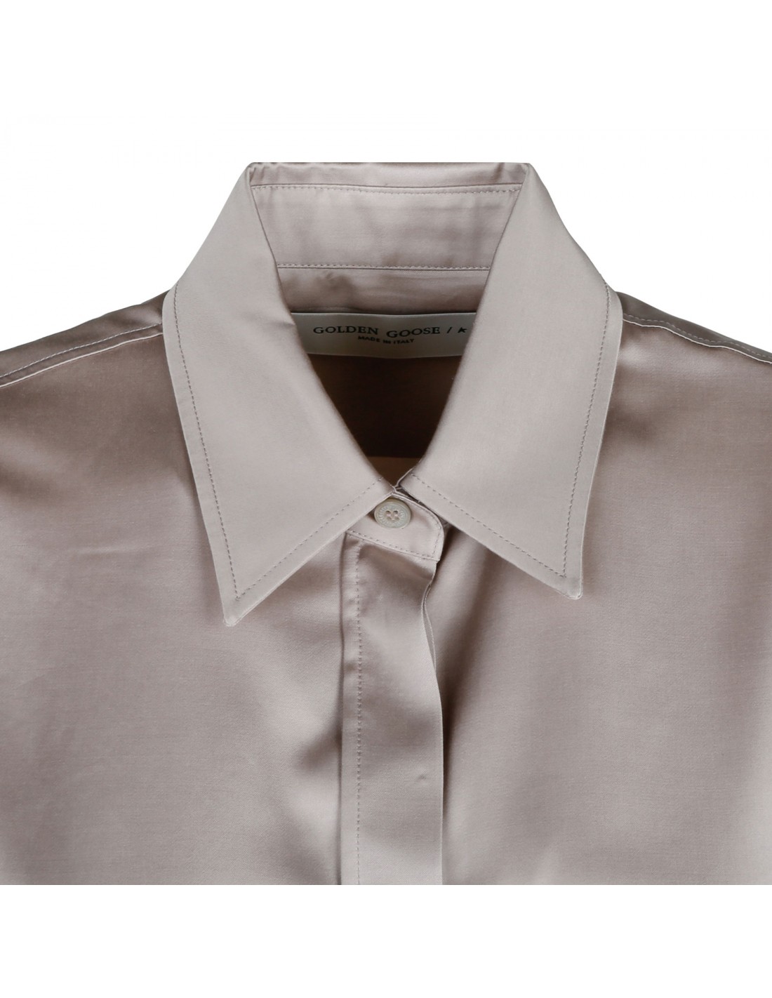 Powder pink fluid viscose boyfriend shirt from Golden Goose Journey collection featuring satin effect, pointed collar, double star on the back, long sleeves with buttoned cuffs, boyfriend silhouette, concealed mother-of-pearl button closure.