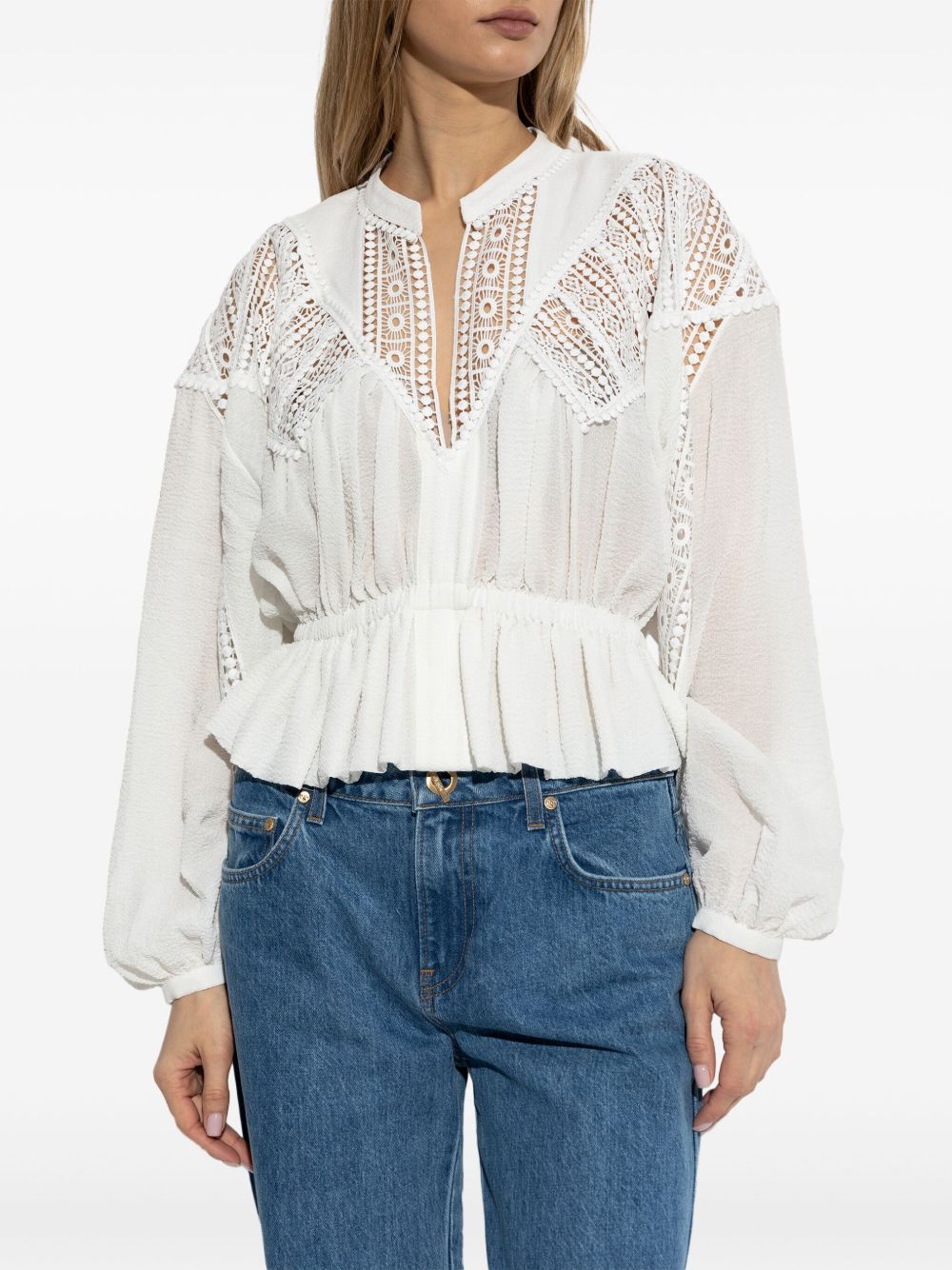 white embroidered design elasticated waist drop shoulder buttoned cuffs