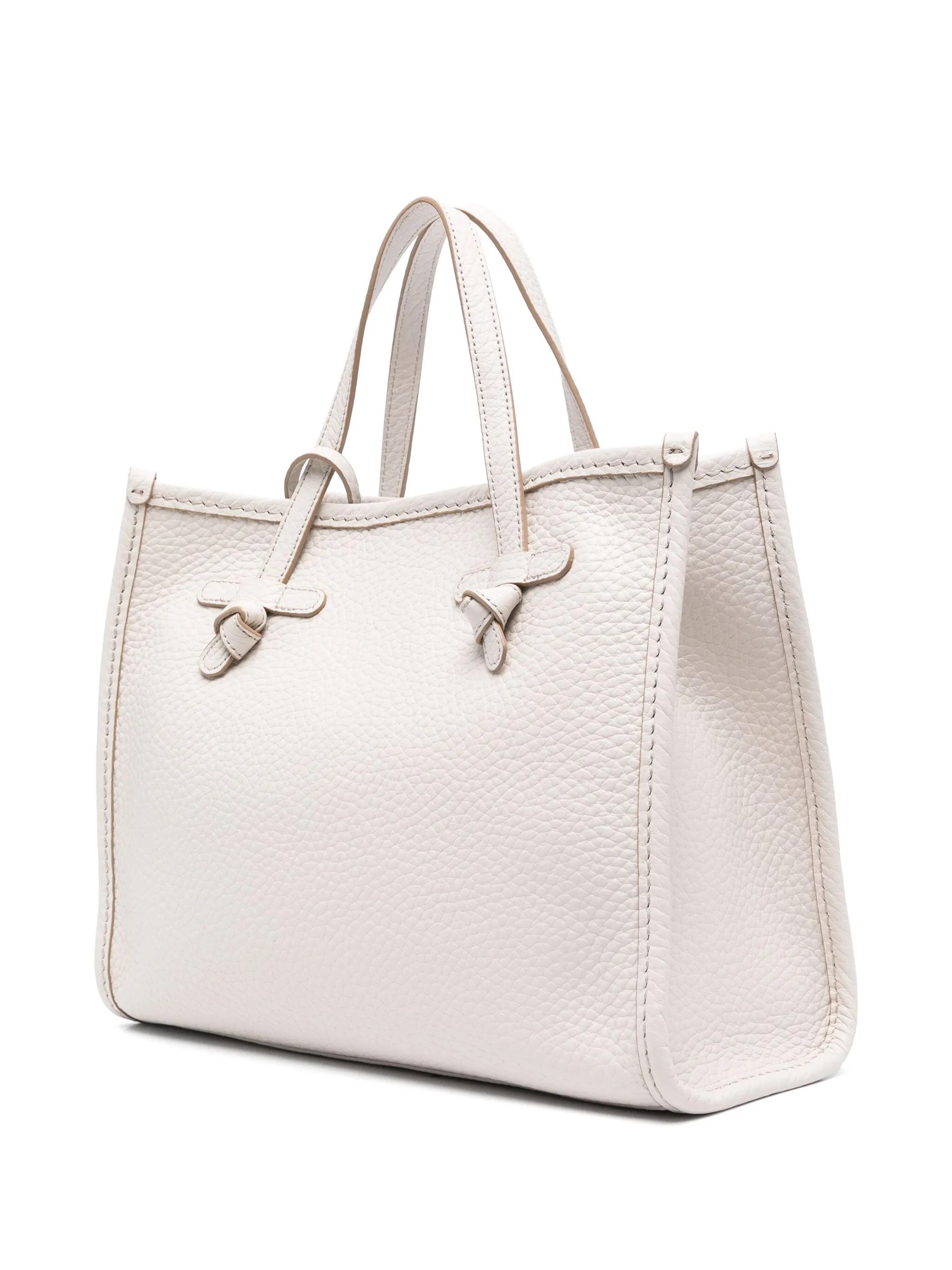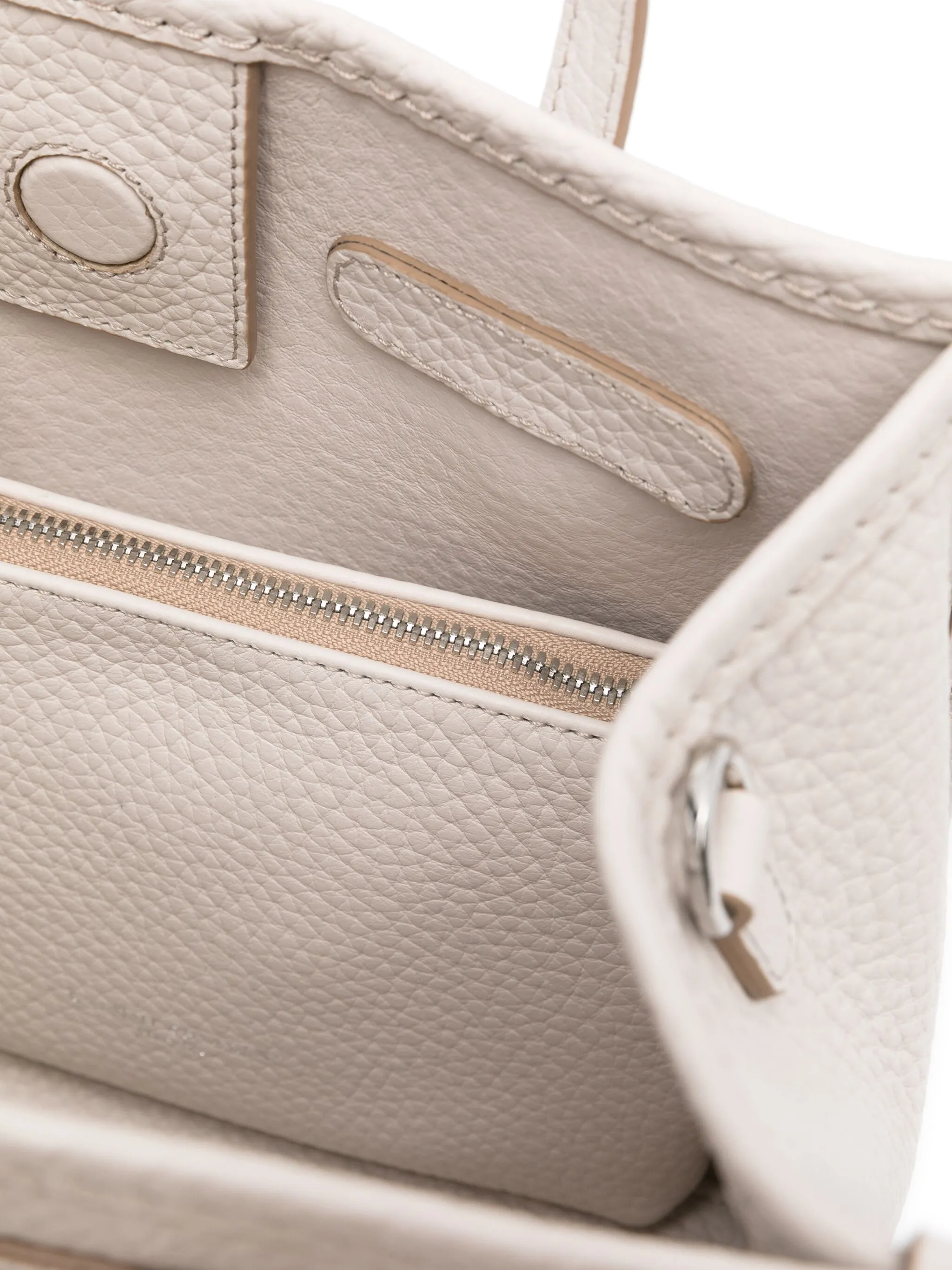 light beige concealed magnetic fastening two flat top handles adjustable detachable shoulder strap This piece comes complete with a protective dust bag