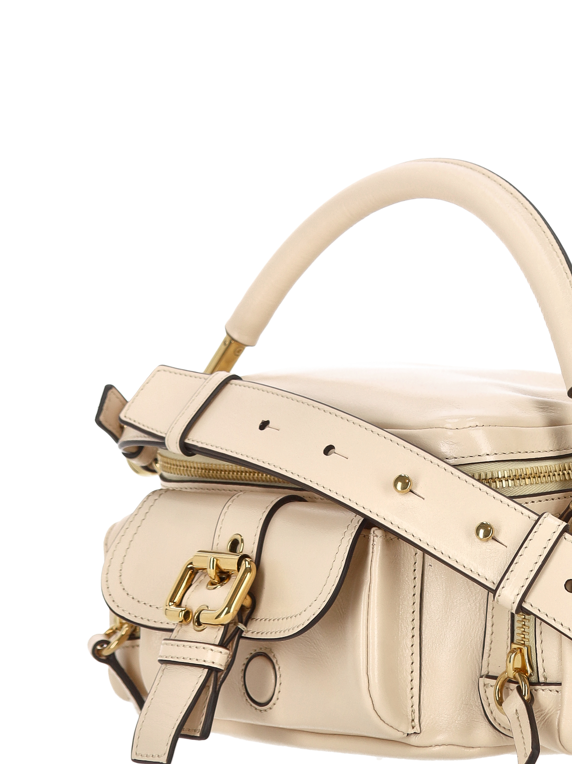 This small Camera bag is made of natural shiny buffalo leather The numerous pockets are embellished with the zips and buckles of the iconic Paddington bag in a revisited version