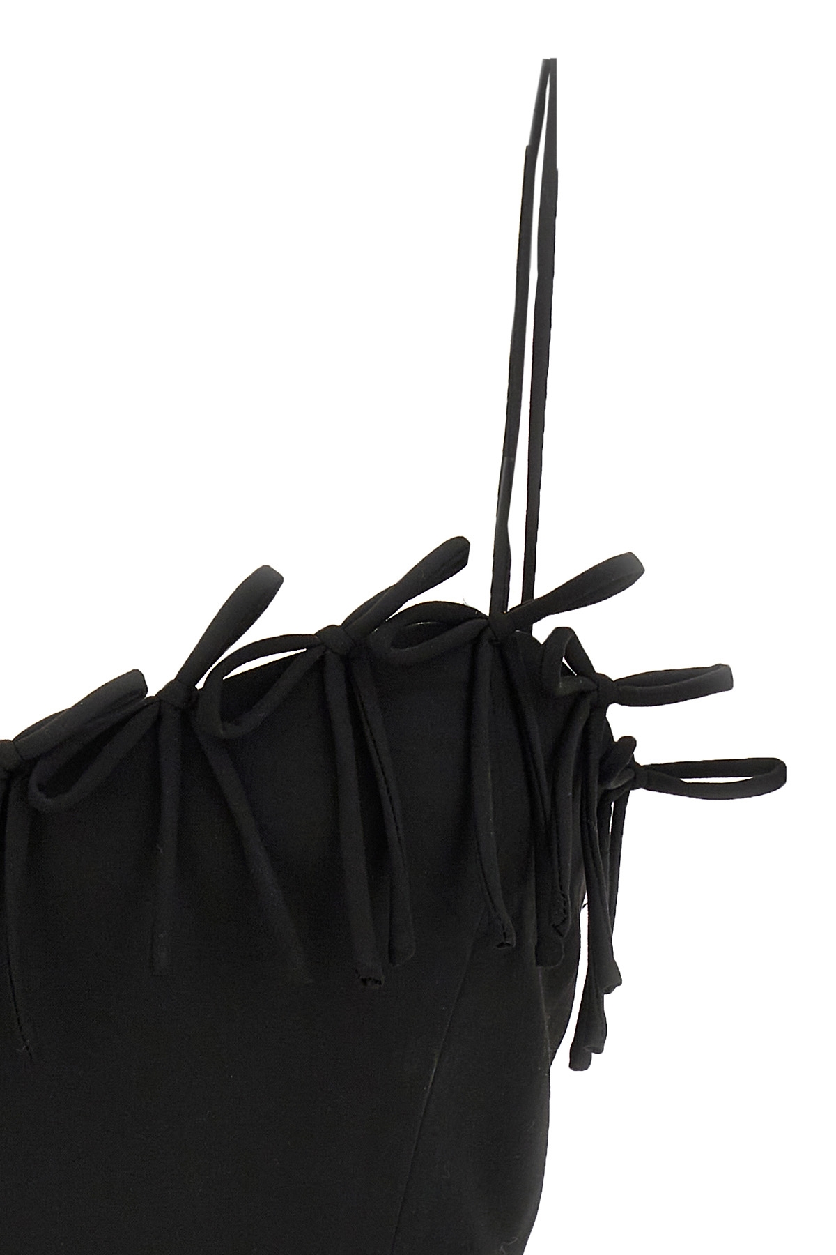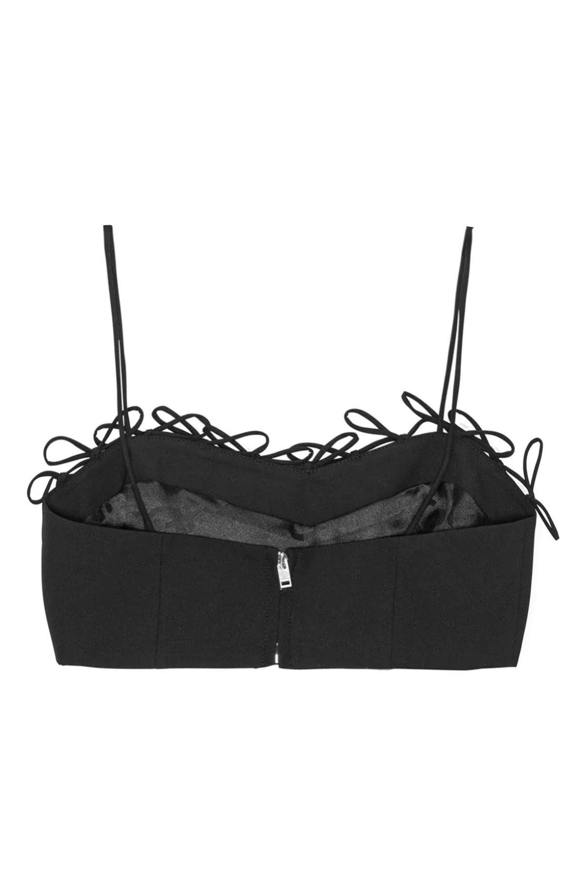 Top cropped with bows, thin straps, back zip closure.