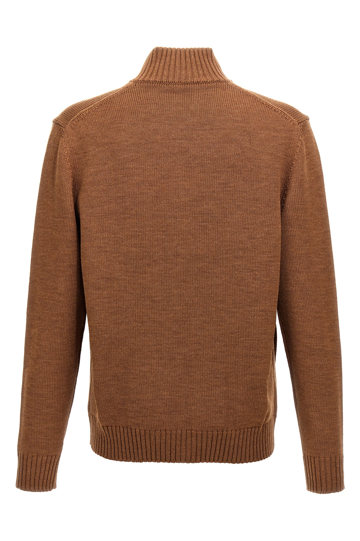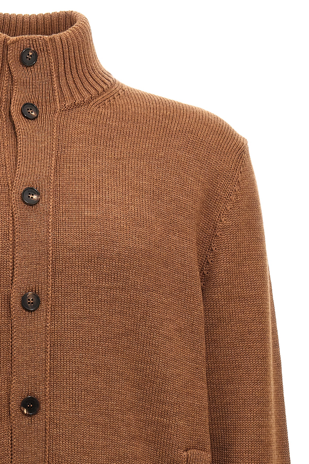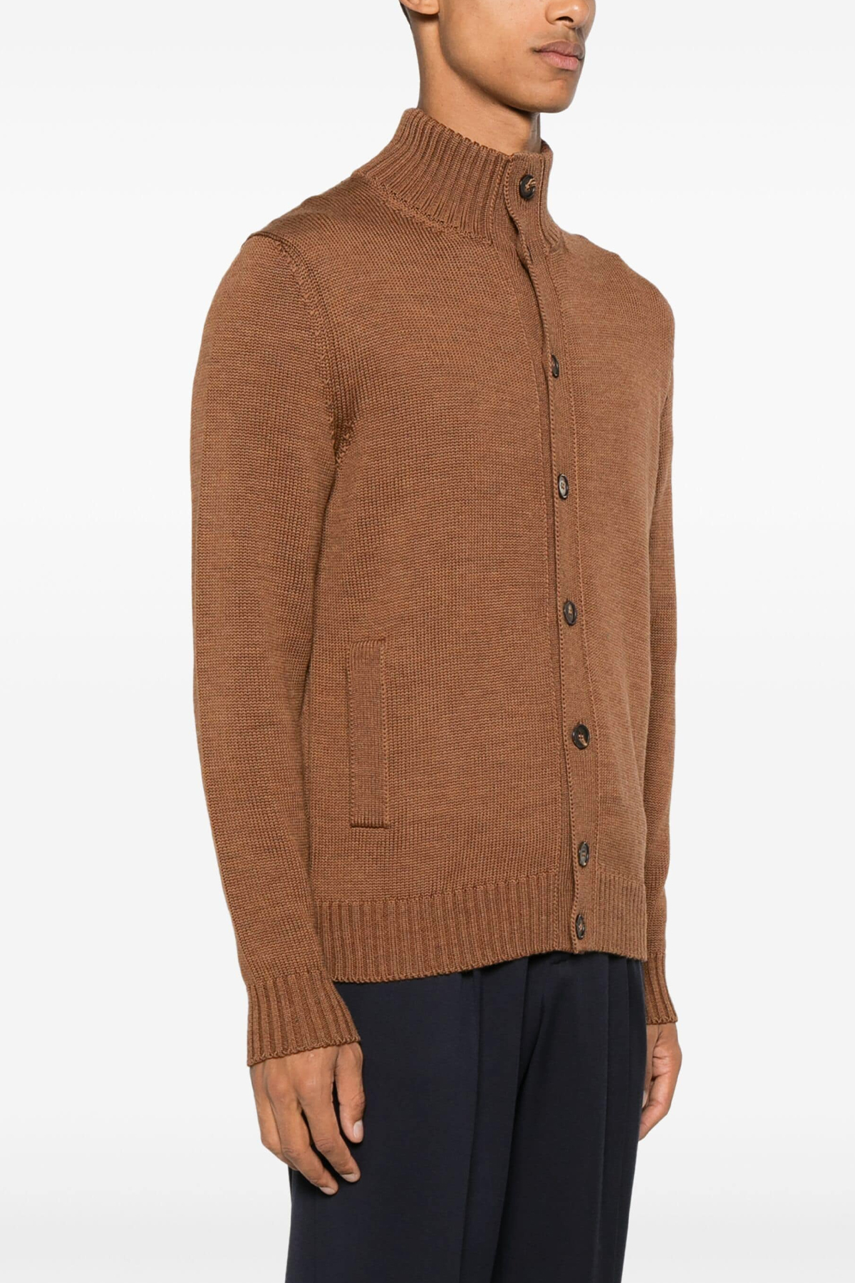 'Chioto' wool cardigan with button closure, high neck, pockets, long cuffed sleeves.