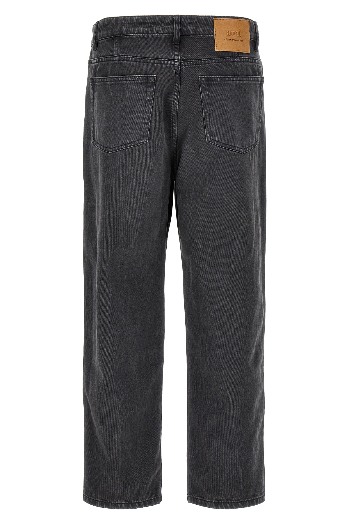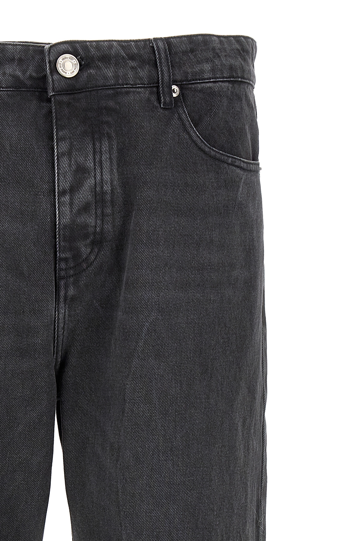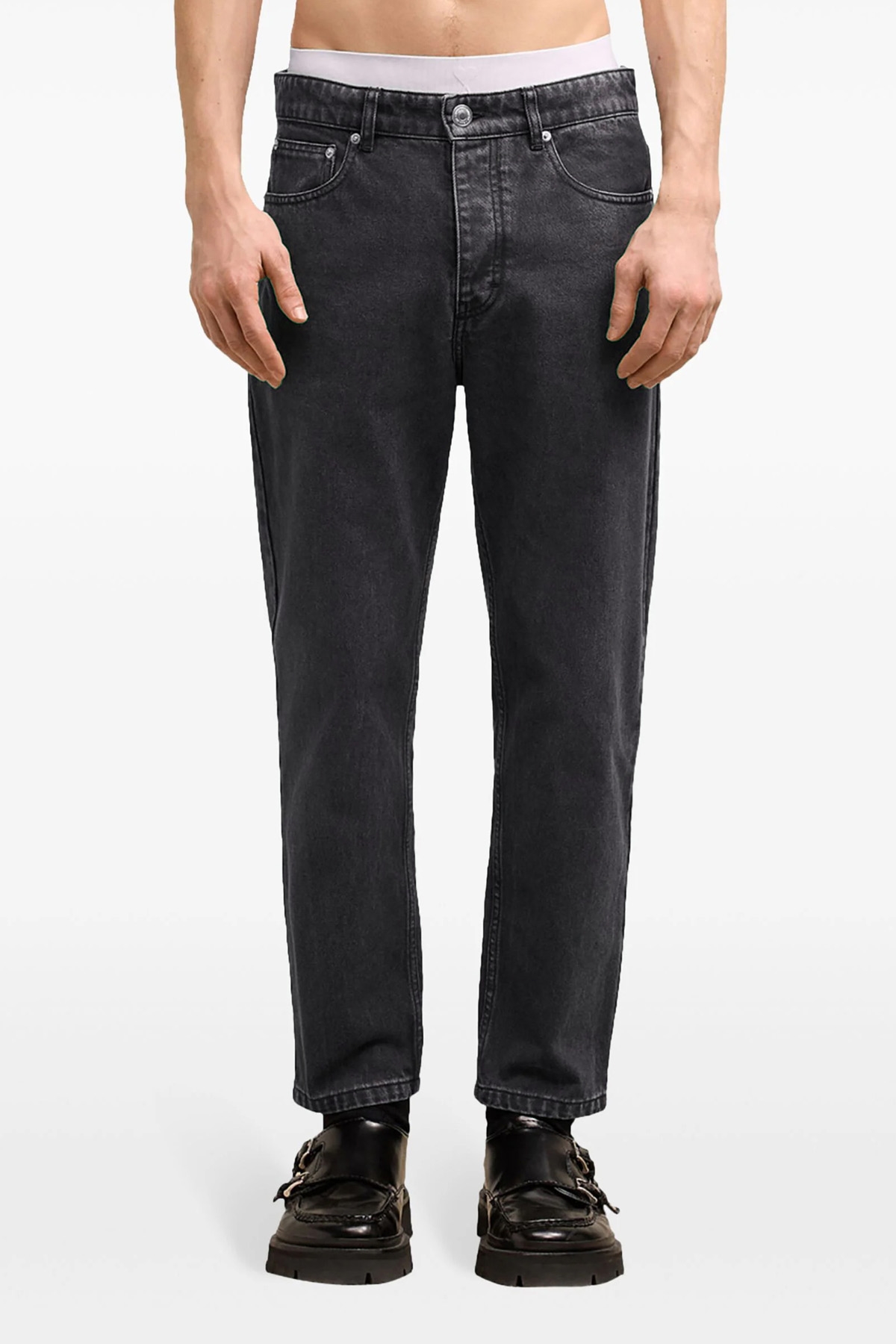 'Tapered Fit' cotton denim jeans with button closure, five pockets, back logo tag.