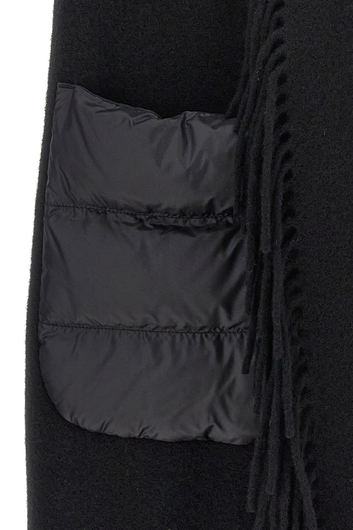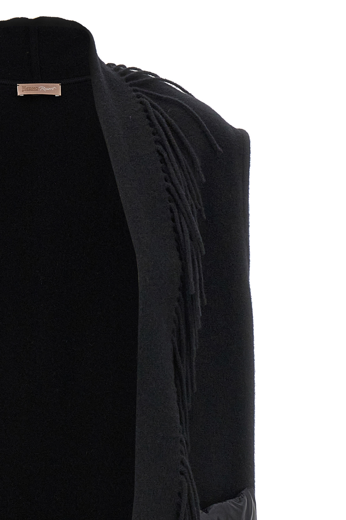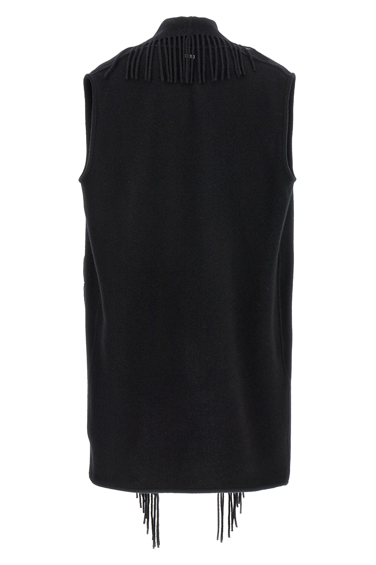 Cashmere blend vest, fringed detail, unlined, front patch and padded pockets, unlined.